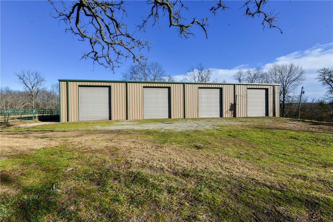 Spectacular 320-acre estate 8 minutes north of Branson West. Grand 6,800 sq ft lodge with 8 beds, 6 baths and commercial-grade kitchen. Entertain by the fireplace or in the 20x30 outdoor pavilion. Equestrian-ready with a 100x125 arena and 4-stall shop with paint stall. Over 20 miles of trails, two year-round springs, cave, ponds, gated entry and security.