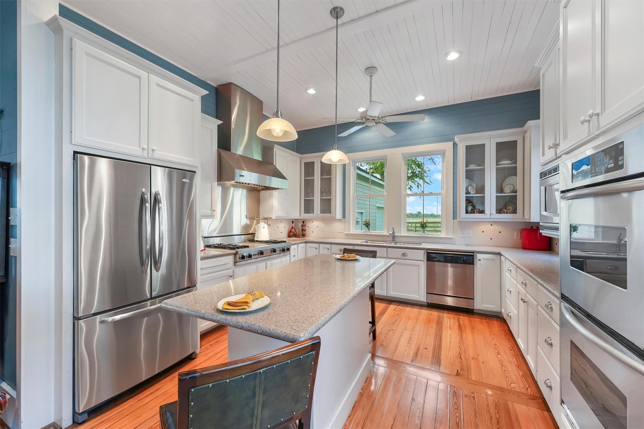 Paintbrush Pastures Ranch is an 87-acre cattle ranch with a scenic Live Oak-lined drive leading to a charming homestead on a hilltop with breathtaking views. Originally built in the 1920s with later additions. The interior features include refinished hardwood floors, 12 ceilings, a stone fireplace, sunroom, 2 studies, 3 large bedrooms, & large windows offering stunning views. The gourmet kitchen with a Viking range & double ovens. Enjoy sunsets & springtime flowers from the spacious front porch. Improvements: recent 30-year roof, water heater & updated plumbing. Ranch amenities: oversized 2-car garage, 3 barns (4 stalls), 2 large ponds, hayfield in production, cattle chute & 4 cross-fenced pastures. Over 3,400 of road frontage on Sam Houston Rd & Little Rocky Rd. Just 1 mi to historic Independence, 10 mi to Brenham, 28 mi to College Station & under 2 hrs from Austin/Houston.