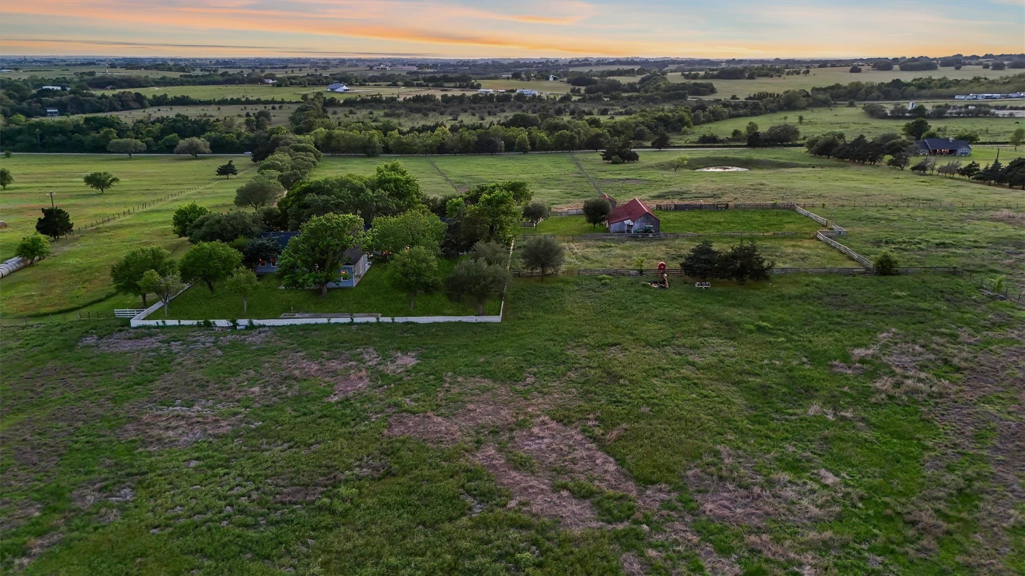Paintbrush Pastures Ranch is an 87-acre cattle ranch with a scenic Live Oak-lined drive leading to a charming homestead on a hilltop with breathtaking views. Originally built in the 1920s with later additions. The interior features include refinished hardwood floors, 12 ceilings, a stone fireplace, sunroom, 2 studies, 3 large bedrooms, & large windows offering stunning views.