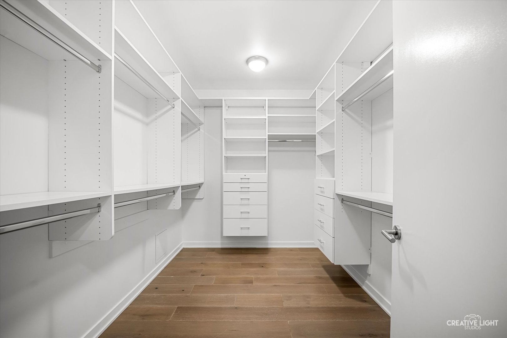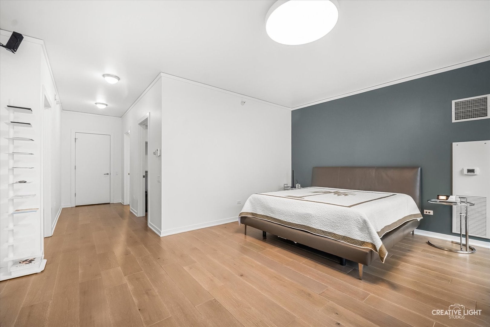 Residence 402 at 595 Tower blends timeless design with beautifully simplified living in a boutique building of only 10 homesideal for empty nesters, executives, or relocation buyers seeking calm, turn-key elegance. The entry opens to a warm living area with custom millwork, hardwood floors, a centered fireplace, and soft natural light through Pella Impervia windows.