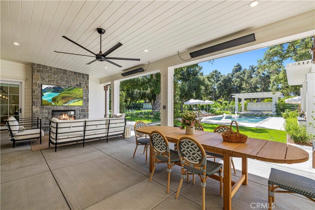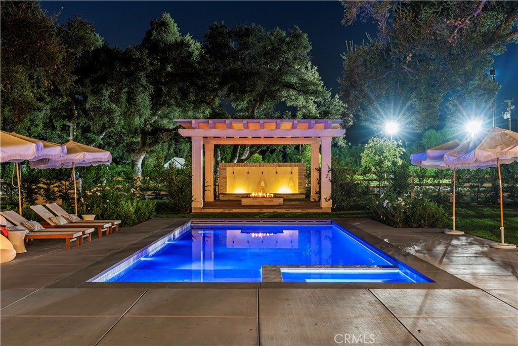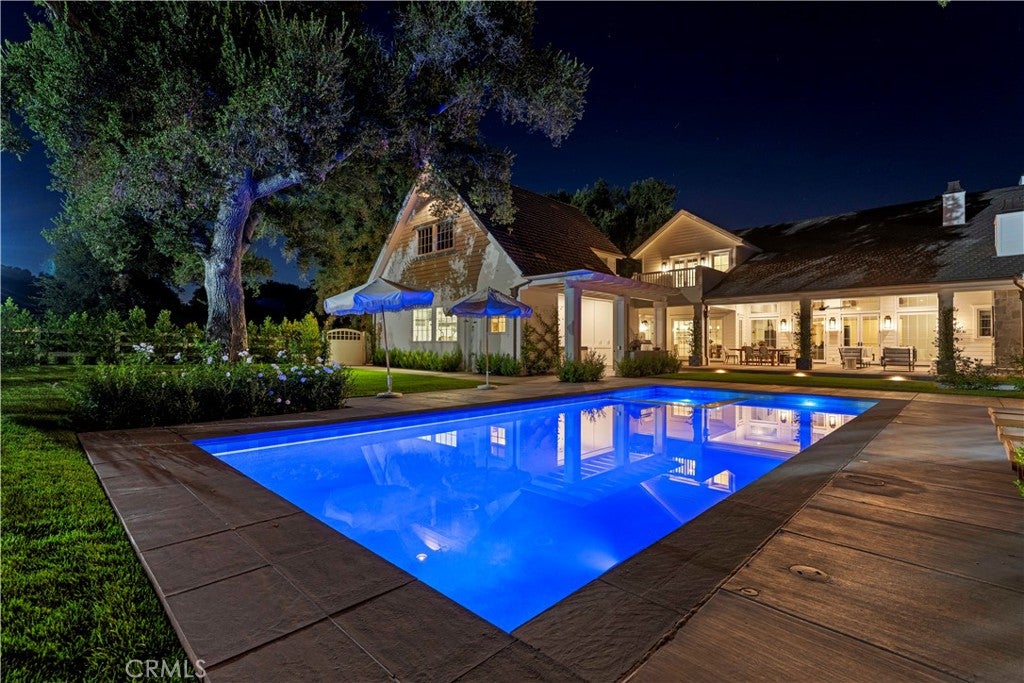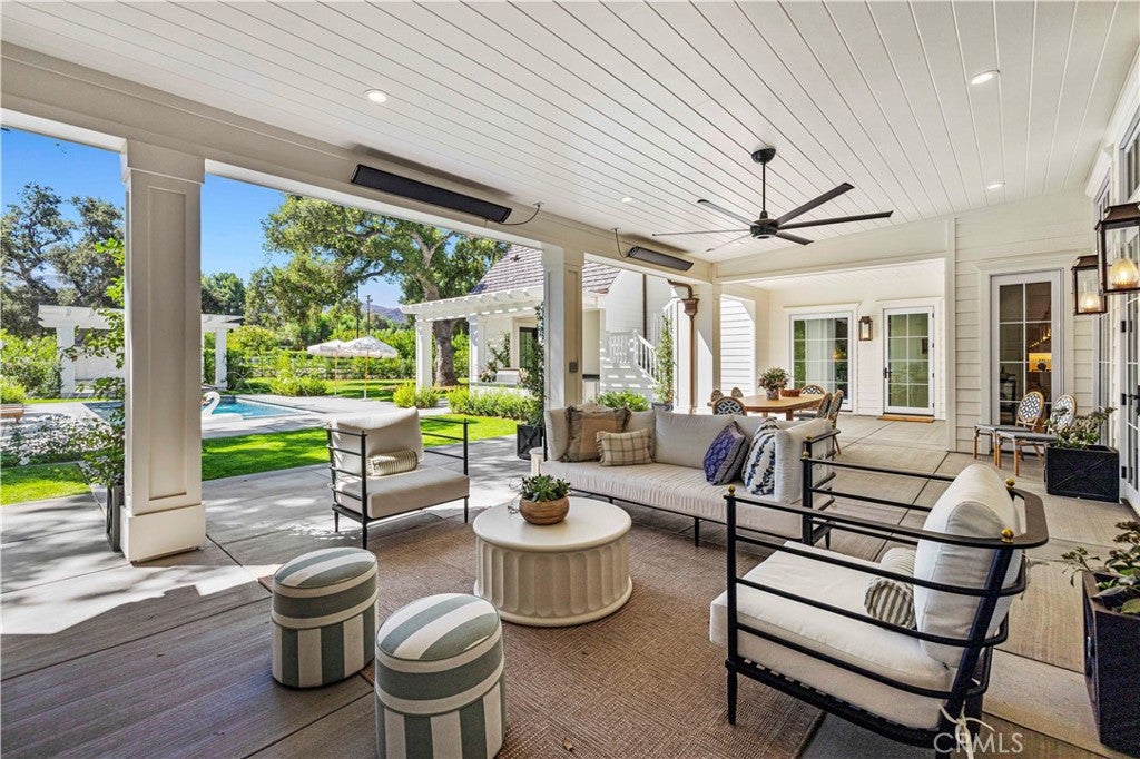North Ranch masterpiece! Completely rebuilt and reimagined modern traditional with the ultimate end of cul-de-sac location in the heart of North Ranch! Spanning approximately 7300 square feet with every amenity desired! Professionally designed and masterfully built using the very finest finishes throughout! Interior Features include an all new center island kitchen which boasts state of the art custom cabinetry, quartzite counters and top of the line appliances. The wide open floorplan is graced with massive two story custom ceilings, wood floors, floor to ceiling stone fireplaces and much more. The awe inspiring great room is second to none and provides a walk in wet bar and wine cellar. Upstairs there is an awesome bonus area/lounge, 3 large secondary en-suite bedrooms and an exceptional primary suite that will leave you speechless. The primary suite is graced with custom wood detailed ceilings, fireplace, two finished walk in closets and a Four Seasons quality bathroom. There is also a large 5th en-suite bedroom on the main level. The resort quality grounds are second to none with an epic SELF CONTAINED guest apartment with separate entrance. The completely private backyard also provides a remodeled pool and spa, firepit, all new outdoor kitchen and an abundance of manicured lawns. Other amenities include new doors and windows, new HVAC and too much more to mention. This is a rare offering for an extraordinary like new estate with the perfect location and setting!!