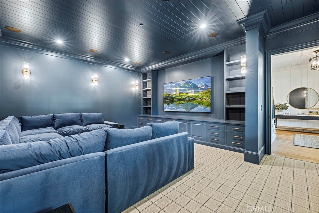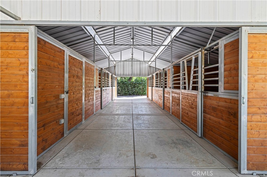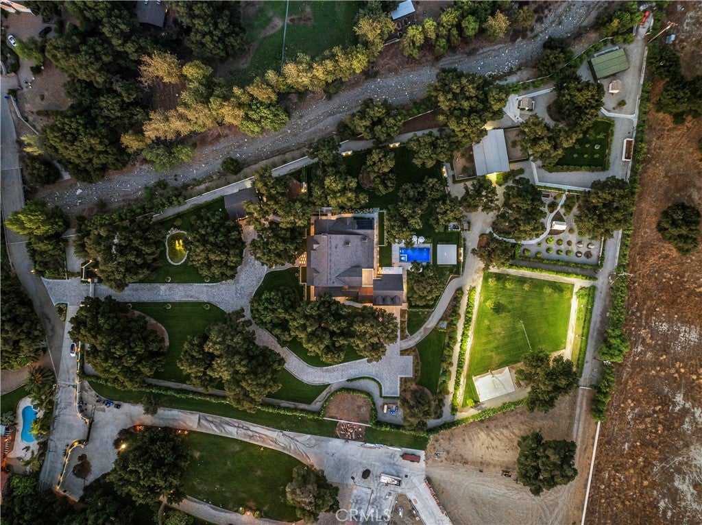 Tucked behind private gates and approached by a long paver stone driveway, this truly magnificent Sand Canyon estate spans approximately 7,815 sqft across five exquisitely manicured acres. The 6,800 sqft main residence is complemented by a spacious 653 sqft ADU above the attached three car garage, along with a separate two car carriage garage connected to a 362 square foot gym or office. Inside, soaring ceilings, coffered detailing, custom wall paneling, rich wood accents, and wide plank oak floors set a warm yet grand tone, anchored by striking stone fireplaces and reclaimed beams showcased in the family room. The home flows effortlessly into a showpiece kitchen finished in Calacatta marble with a statement Lacanche range, Thermador appliances, handmade tile, a butlers pantry, wine refrigeration, seamless custom cabinetry, and a large walk-in pantry with two additional refrigerators. The main level features both the expansive primary bedroom suite and an additional downstairs bedroom with a full bath, while upstairs offers three guest bedrooms each with their own ensuite baths, a spacious loft, and beautifully appointed bathrooms finished in Carrera marble. The primary suite is a true retreat with its own fireplace, breathtaking estate views, and a spa inspired bath featuring herringbone marble floors, a luxurious shower, and a stunning standalone soaking tub. Entertaining continues with a refined dining room with classic wainscoting, a dedicated movie theater with insulated soundproofed walls, and space beneath the stairs that could offer a potential wine cellar. The ADU provides private guest accommodations with tall ceilings, kitchenette, separate HVAC, studio style living, and marble shower. Outdoors, the estate unfolds with stone patios and walkways, copper lanterns and gutters, a stunning resort style pool with deck jets and spa, a tranquil pond with multiple water features for added ambiance, an outdoor shower, a fully equipped outdoor kitchen, covered entertaining areas with heaters and oversized fan, 48 heritage oak trees, a stone encased raised bed garden with greenhouse, full perimeter snake fencing, manicured lawns, professional lighting, a five stall barn with turnouts, sport courts, sauna, and generous storage, all powered by a 600 amp electrical panel, paid off solar, public water for the home, and a private irrigation well, firmly positioning this exceptional property among the most premier estates Santa Clarita has to offer.