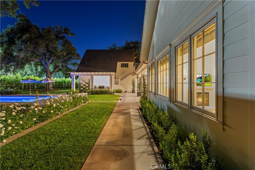 Tucked behind private gates and approached by a long paver stone driveway, this truly magnificent Sand Canyon estate spans approximately 7,815 sqft across five exquisitely manicured acres. The 6,800 sqft main residence is complemented by a spacious 653 sqft ADU above the attached three car garage, along with a separate two car carriage garage connected to a 362 square foot gym or office.