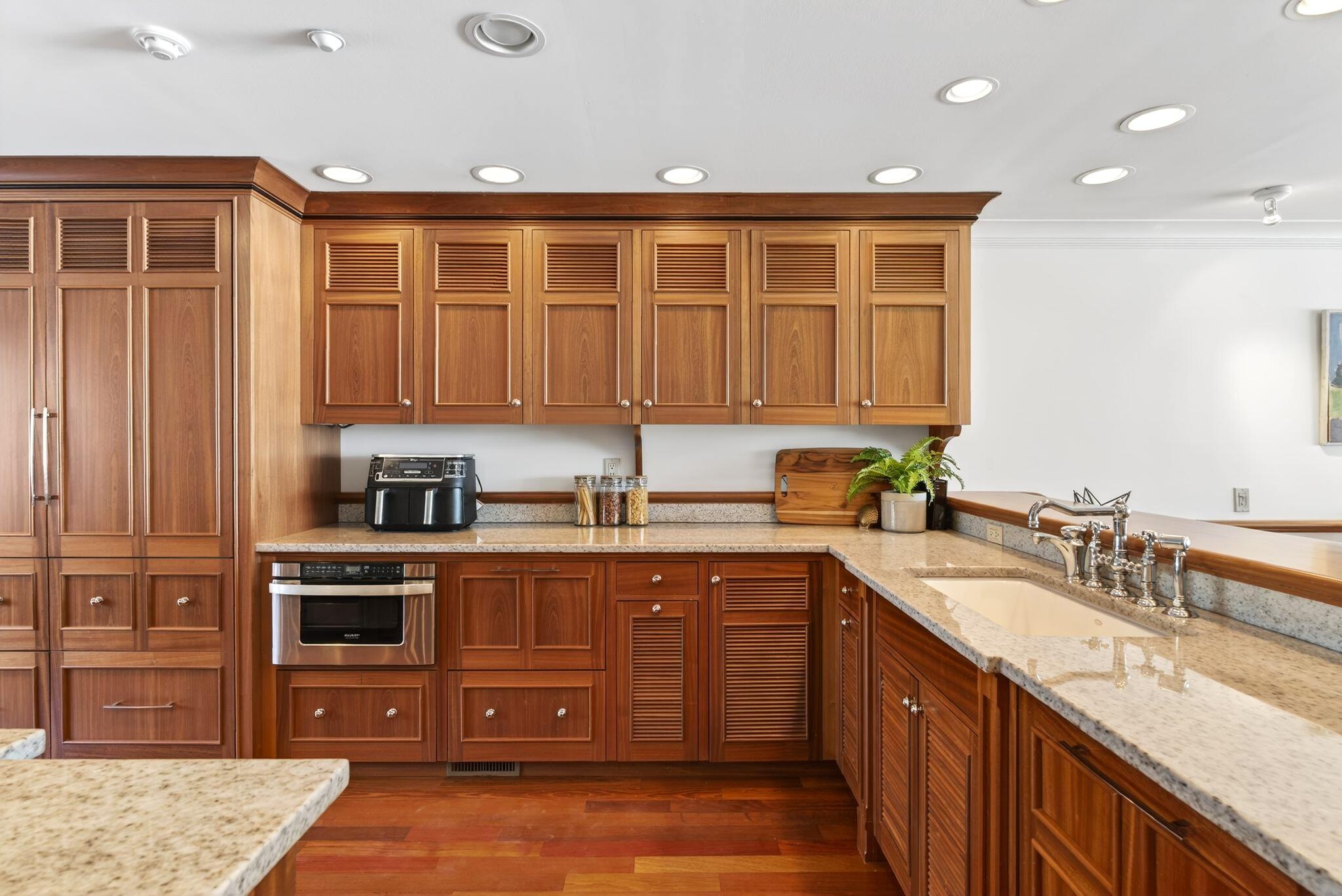 Gorgeous single-story home located on a beautifully landscaped 14,198 sq.ft. lot within the award-winning Arcadia Unified School District. Extensively updated and expanded in 2005, this residence offers 6 bedrooms and 4 bathrooms with an inviting open floor plan and exceptional indoor-outdoor living.The circular driveway welcomes you with manicured landscaping and mature trees. Inside, the spacious foyer opens to the formal living and dining areas with elegant cherry wood flooring, soaring ceilings, recessed LED lighting, and custom casement doors that highlight the serene backyard views.The remodeled chefs kitchen features custom cherry wood cabinetry, premium stainless-steel appliances, granite countertops, and a built-in refrigerator. The luxurious primary suite includes a generous walk-in closet and a spa-inspired en-suite bathroom with a Swedish-style shower, steam sauna, and soaking tub.A true highlight of this home is the impressive tropical backyard retreatperfect for entertaining. Enjoy the custom Trek deck, resort-style pool with waterfall, and covered BBQ area. The expansive yard also includes newer windows and doors, plantation shutters, and a 3-car detached garage offering abundant storage, a large laundry room with sink, and additional cabinetry.Smart-home features include security monitoring, lighting controls, and DVR camera surveillance. Located on a quiet street close to top-rated schools, shopping, restaurants, golf courses, and parksthis home truly offers the complete package.