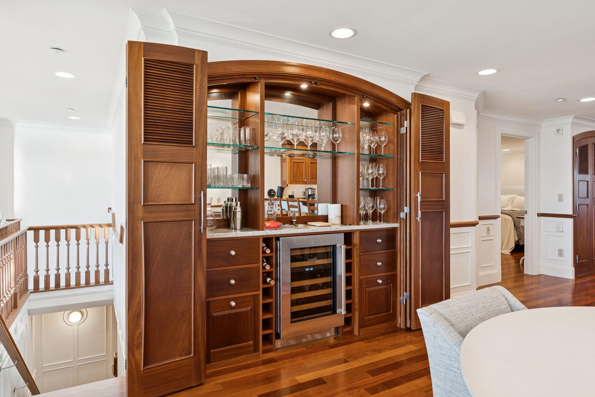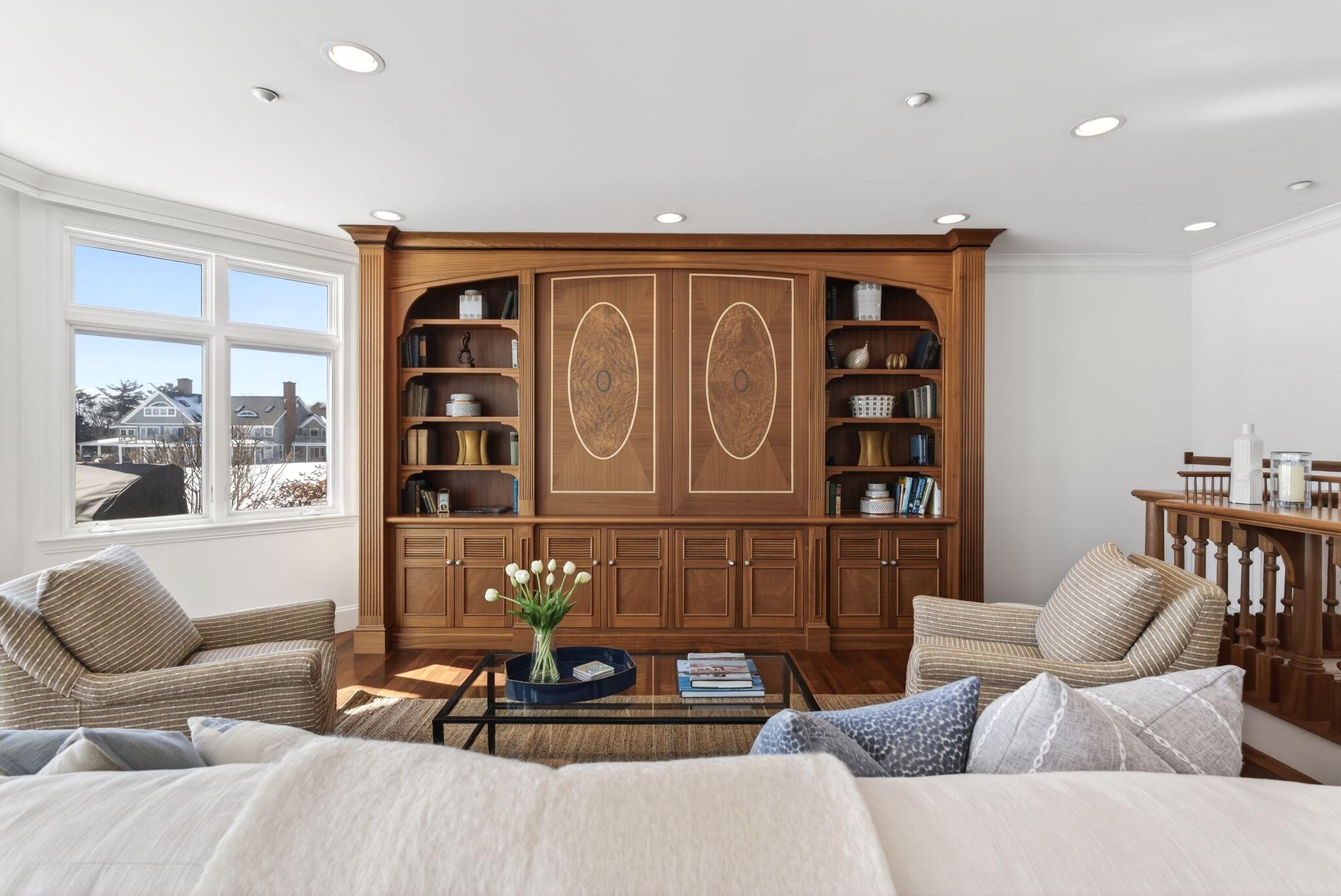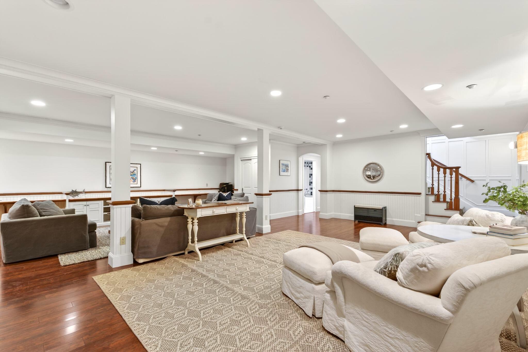 Experience refined oceanfront living at The Atlantic House, a private gated community with resort-style amenities including an oceanside pool and spa, tennis courts, and a secluded boardwalk to Scarborough Beach. 6 Atlantic Drive is a finely appointed residence offering breathtaking ocean views and sophisticated coastal style. Custom millwork, a marble-clad primary bath, and a chefs kitchen with rich mahogany cabinetry exemplify timeless craftsmanship. Enjoy ocean breezes from the covered porch or unwind in the lower-level guest retreat with jetted bath. Every detail reflects understated luxury and the serene rhythm of seaside living.