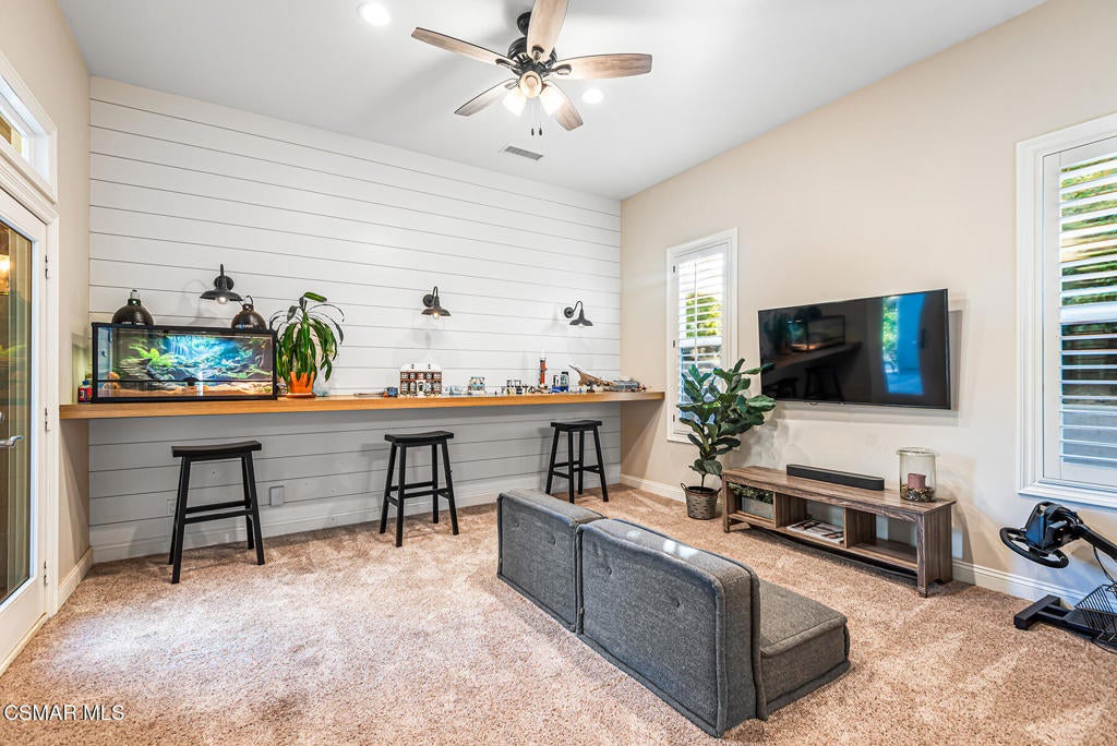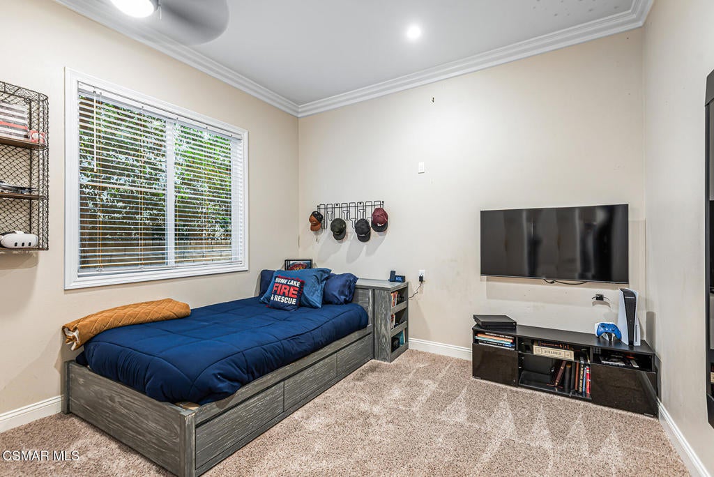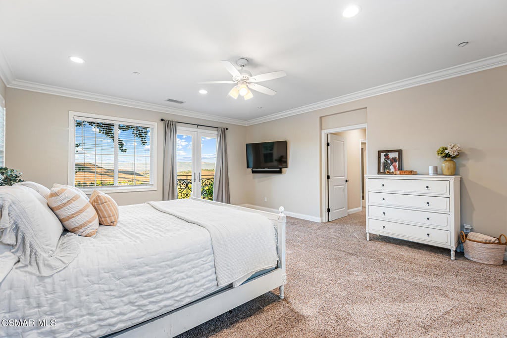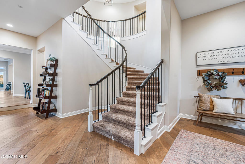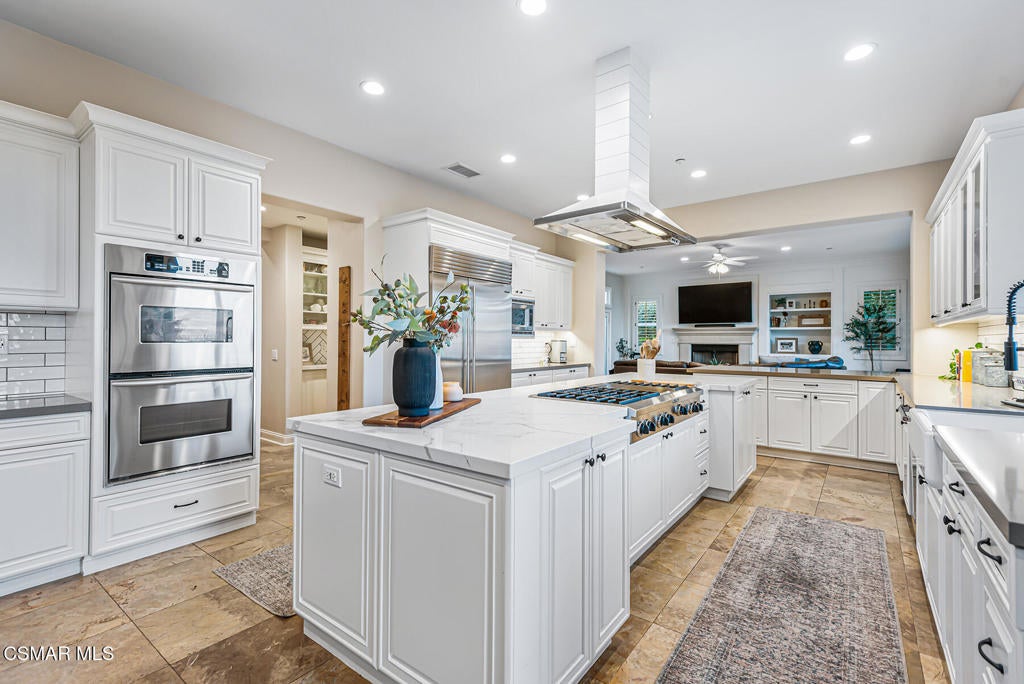 The absolute trophy estate in the exclusive gated community, The Vineyards of Wood Ranch! This sensational former model home has a premier location in one of Simi Valleys most desired gated communities. Boasting panoramic unobstructed views, this beauty has true pride of ownership and stunning details throughout! There are 4 en-suite bedrooms and a convertible den/office (with en-suite bathroom) that can easily be made into a 5th bedroom. Features also include an upstairs loft/play room and a tremendous primary suite with large sitting room, two walk in closets, Juliette balcony and a luxurious bathroom. The upgraded center island kitchen is graced with top of the line appliances and opens seamlessly to the large family room with fireplace. The highly desired floorplan provides 3 en-suite bedrooms up and one down with the convertible den (possible 5th BR) also located on the main level. The resort quality backyard is second to none! There is a custom pebble tech pool and spa, multiple slatted wood covered patios, next level chefs outdoor kitchen, basketball court, private courtyard with outdoor fireplace and lush manicured lawns all with jaw dropping views and ultimate privacy! Other amenities include a newer expanded custom driveway, FOUR CAR garage, New front landscaping and landscape lighting, new window treatments, Lutron lighting and so much more! A very special offering!