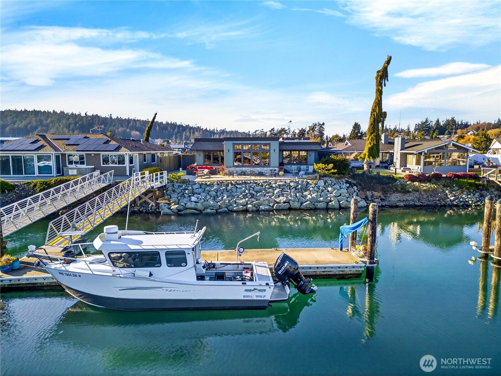 Experience premier waterfront living in the heart of Skyline with this beautiful single-level home offering private moorage and exceptional craftsmanship. With approximately 70/- feet of low-bank saltwater frontage and a 50/- foot double-sided private dock, theres room for your yacht, fishing vessel, and all your waterfront adventures. Designed with an open-concept layout, the home lives effortlessly, blending expansive living spaces with sweeping marina views. Two luxurious primary suites provide flexibility and comfortone featuring a spa-inspired bath with a steam shower and jetted tub for a true retreat experience. Copper-clad wood windows frame the water views, while copper gutters and downspouts add distinctive architectural detail and long-lasting quality. A generous craft room with custom built-ins offers creative space rarely found in waterfront properties, and a thoughtfully designed office with built-in cabinetry captures beautiful marina viewsideal for working from home without missing a moment of the scenery. Car enthusiasts and travelers will appreciate the attached 2-car garage plus an additional bay sized for a 45/- motorhome or boat, along with exterior RV parking. All of this is located just about 70 minutes from Seattle. This is Pacific Northwest boating lifestyle at its finestprivate dock, protected moorage, and refined one-level living in one extraordinary package!