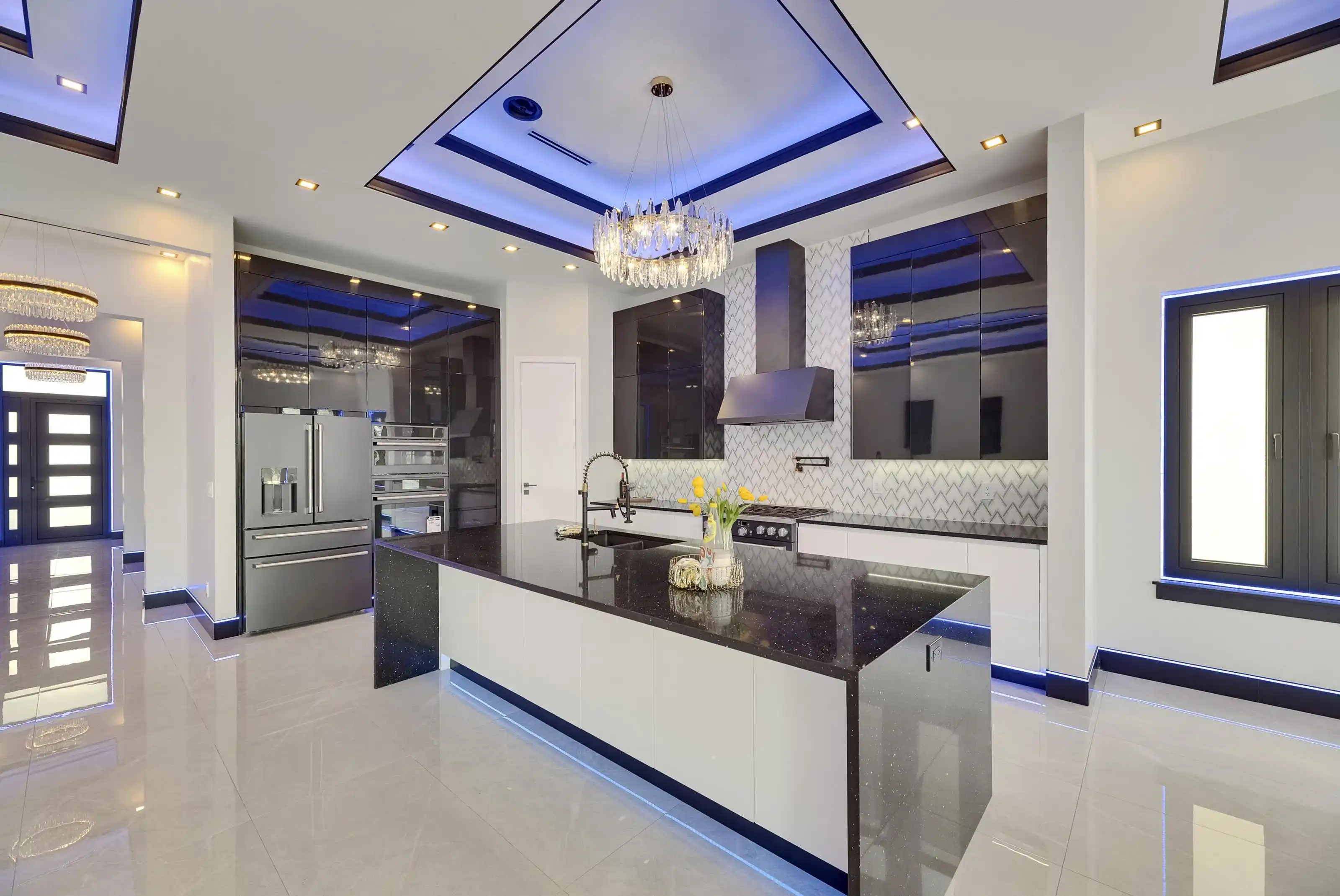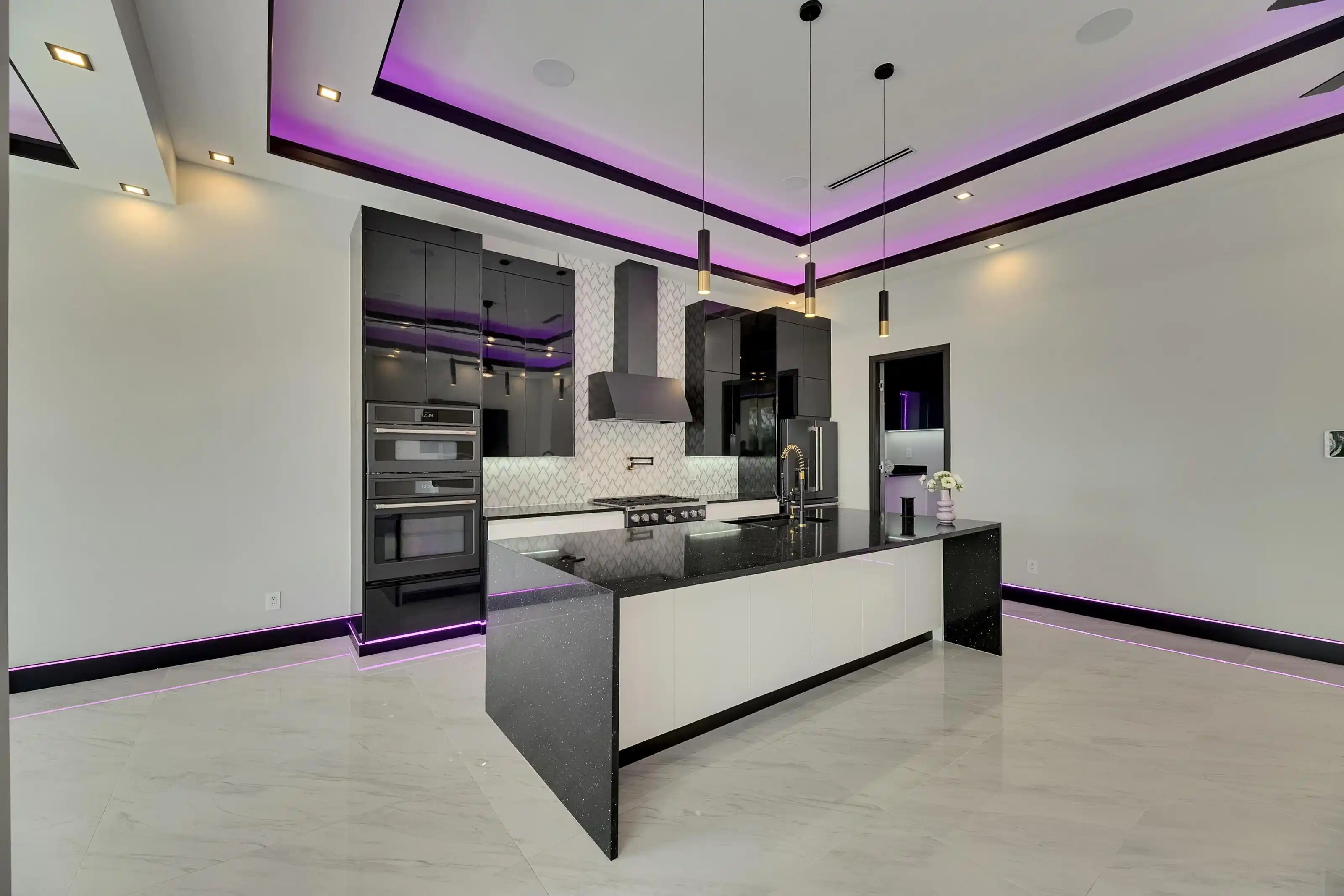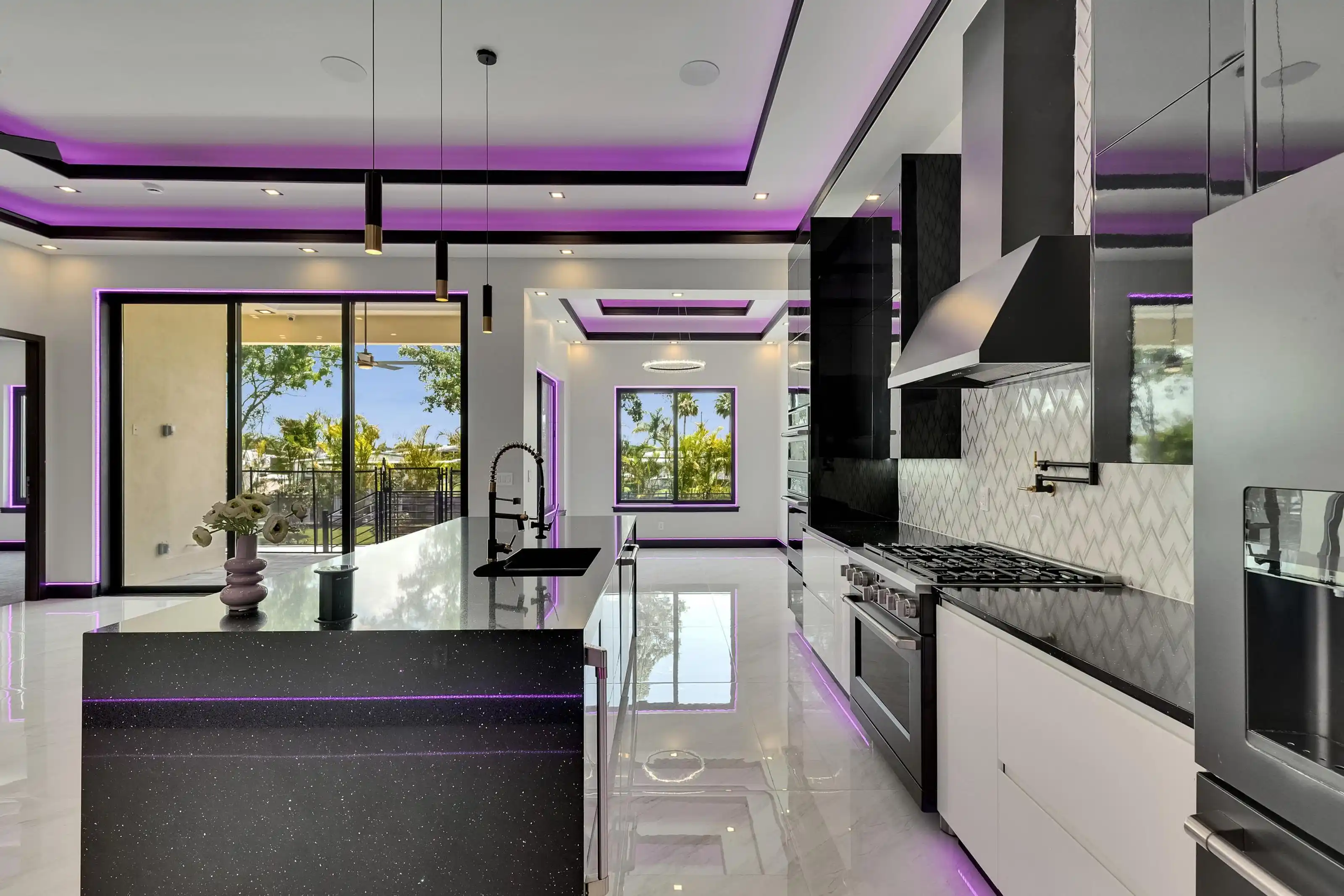 6542 Simone Shore Circle | The Marlin Floorplan 4 Beds | 3 Baths | 2-Car Garage | 2,139 Living Sq. Ft. | 12 ft Elevation Be the first to own this 2024 custom-built home by Bistro Builders in the waterfront community of Hemingway Estates. This single-story Marlin floorplan offers 4 bedrooms, 3 full baths, and a 2-car garage with unmatched upgrades inside and out. Enjoy modern smart home living, solar energy, and a private dock with quick access to the bay. Built with solid block construction and a stem wall foundation, this home stands at a 12 ft elevation. High-efficiency hurricane-rated windows, and fire-resistant, seamless hardware doors add safety and durability. The hurricane-rated, insulated garage doors, along with icynene spray foam insulation, help keep the home quiet and energy efficient. The home also features a hardwired internal and external security system with fingerprint and facial recognition entry. Inside, triple tray ceilings with custom lighting, and smooth-finish walls create a clean, modern look. The great room includes an electric fireplace, triple sliding glass doors, surround sound throughout, and built-in TV and sound system. Imported tile floors flow throughout the main living spaces. The kitchen is built for real cooks, with quartz countertops, a waterfall island, high-end gas appliances, a pot filler, a wine cooler, and two-tone custom cabinetry with organizational pull-down shelving. The dining room is filled with natural light and opens to the lanai. The private primary suite offers pool and canal views, custom lighting, and a large walk-in closet with a European organization system. The bathroom includes dual sinks, a jetted soaking tub, and a floor-to-ceiling tiled shower with multiple shower heads that adjust pressure, color, and temperature. Secondary bedrooms are oversized with tray ceilings and built-in custom closets. The split bedroom layout allows for privacy. The laundry room includes storage cabinets and countertop workspace. Smart home technology runs throughout the house—control solar, lights, thermostat, security, garage, and pool from your phone or the mounted iPads. Other standout features include floor-to-ceiling shower tile, tall bidet toilets with heating, and custom soffit, window, and baseboard lighting. The garage features epoxy flooring and a dedicated AC unit. Outside, heated saltwater pool and spa, and new seawall. The private dock with a 10,000 lb lift makes boating easy. Solar roof tiles with battery wall storage provide energy independence. The HOA includes lawncare, irrigation and landscaping. Located in Apollo Beach across from the Tampa Aquarium Turtle Rescue Center and near the Manatee Viewing Center, this home is close to shopping, dining, hospitals, highways, and schools.