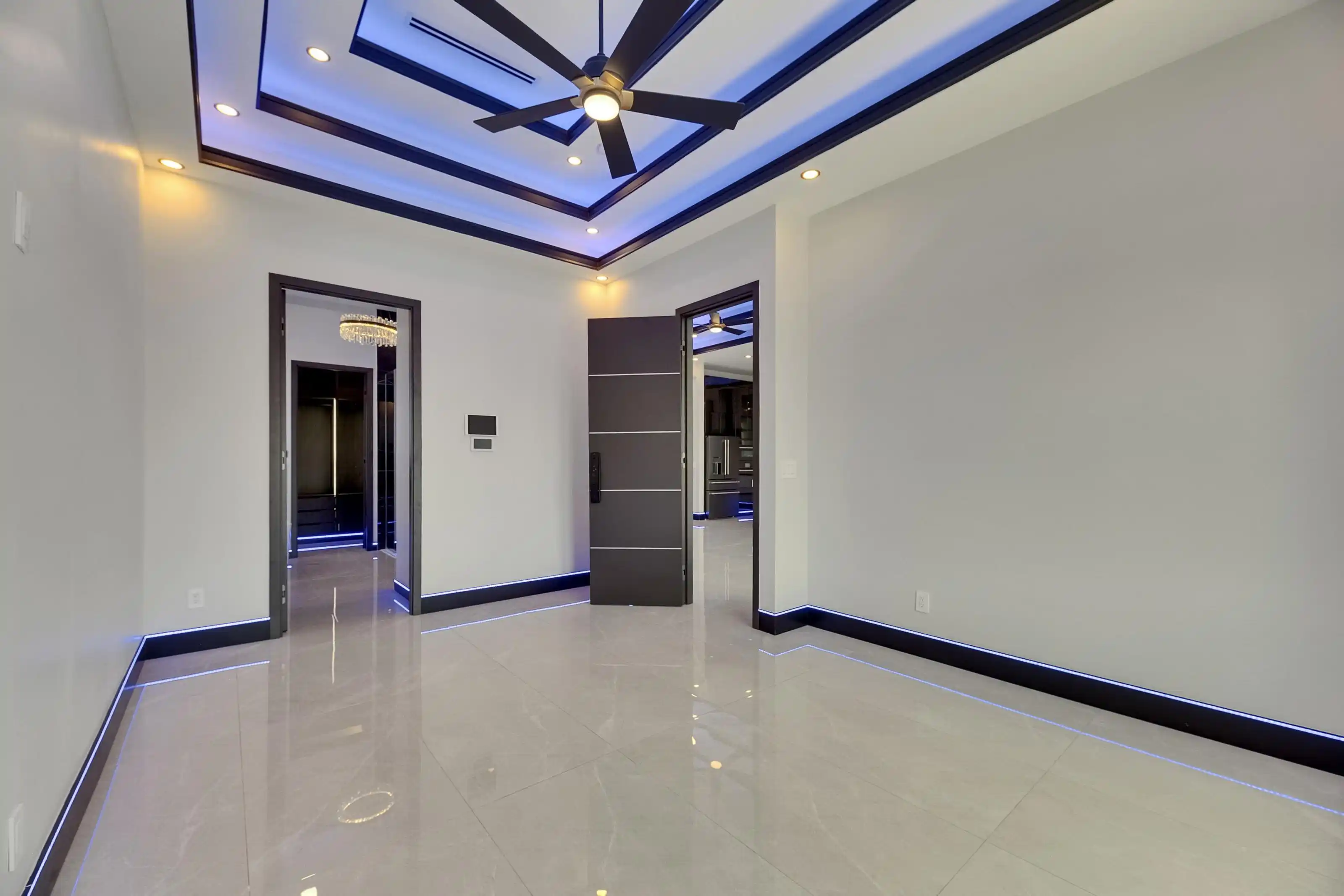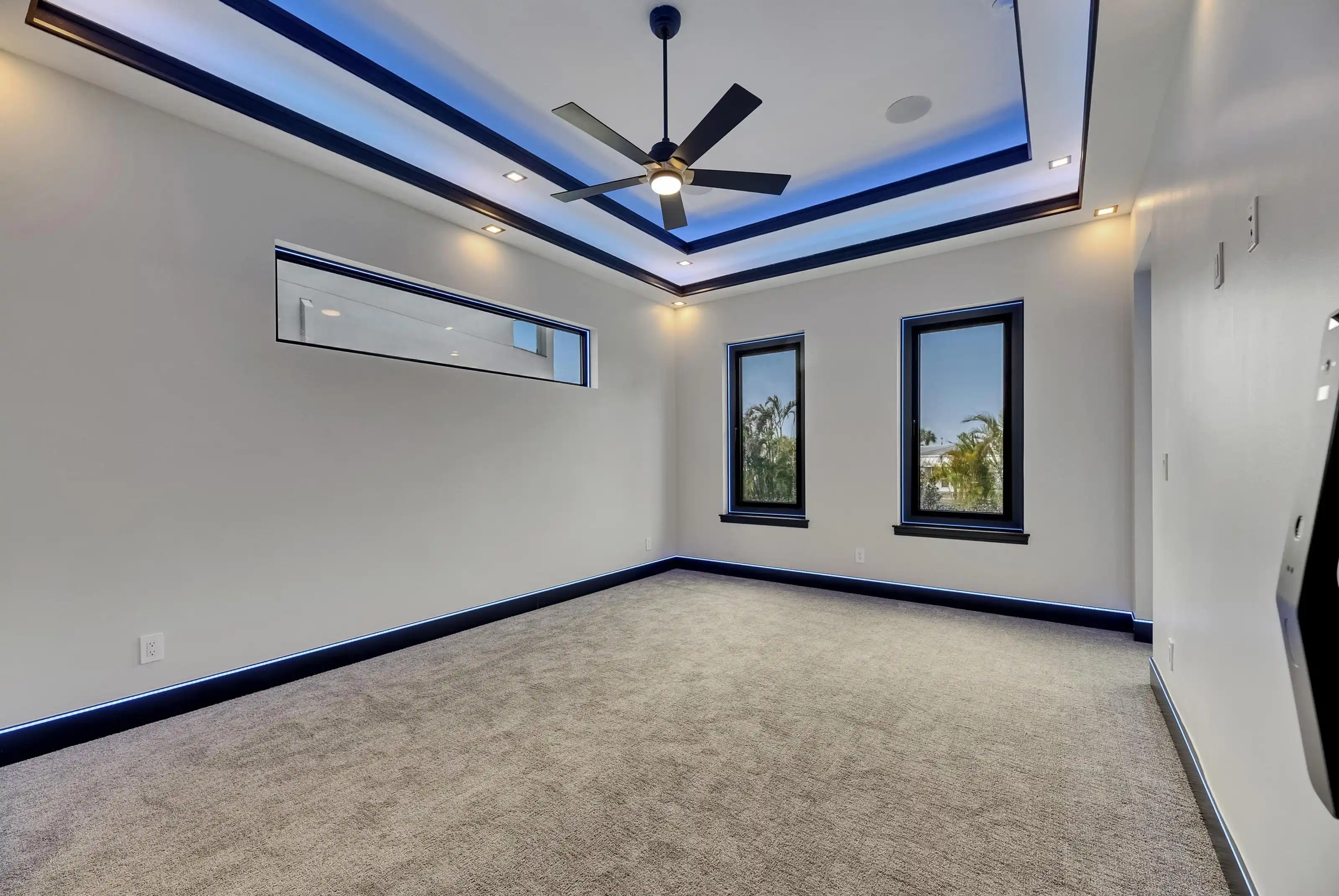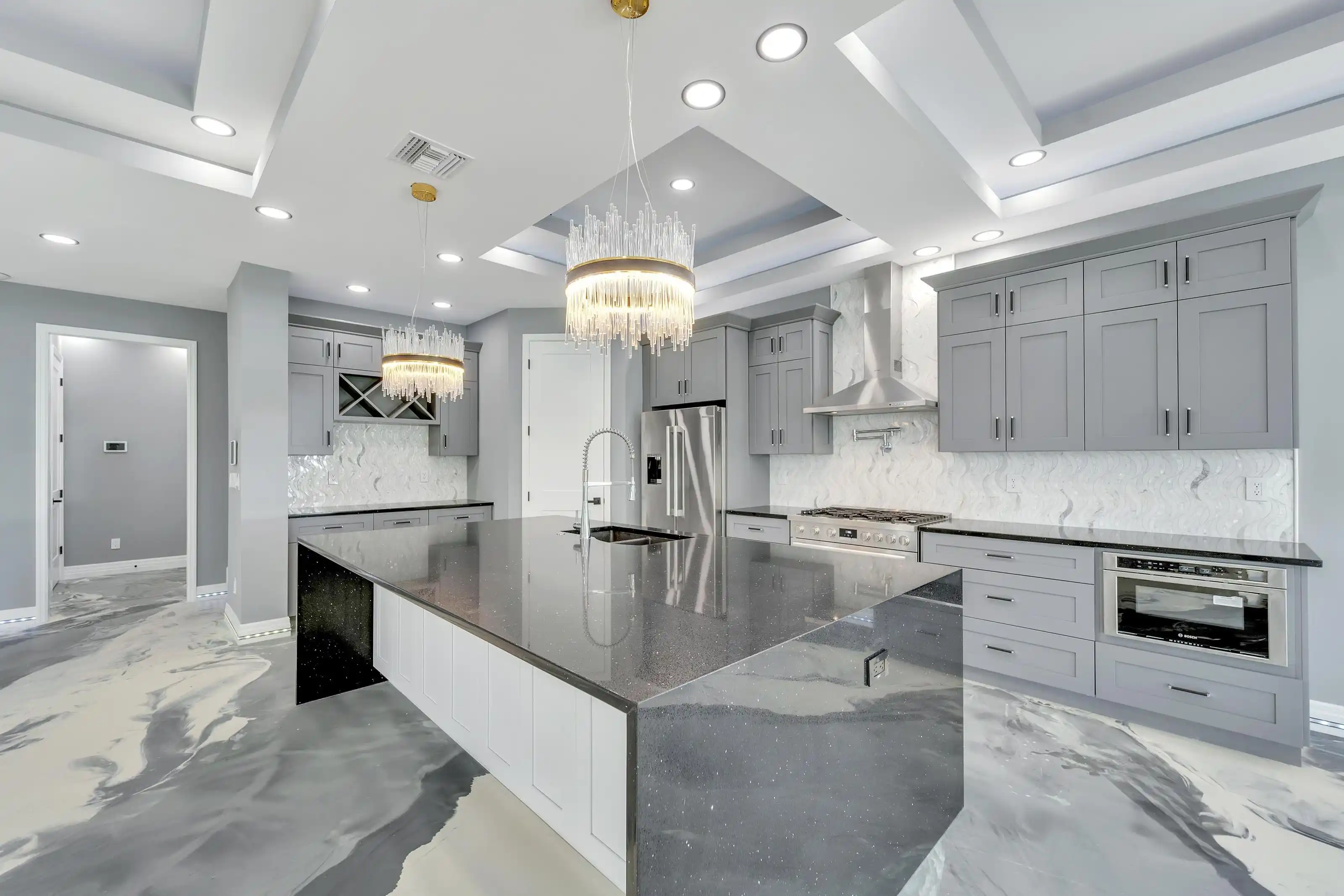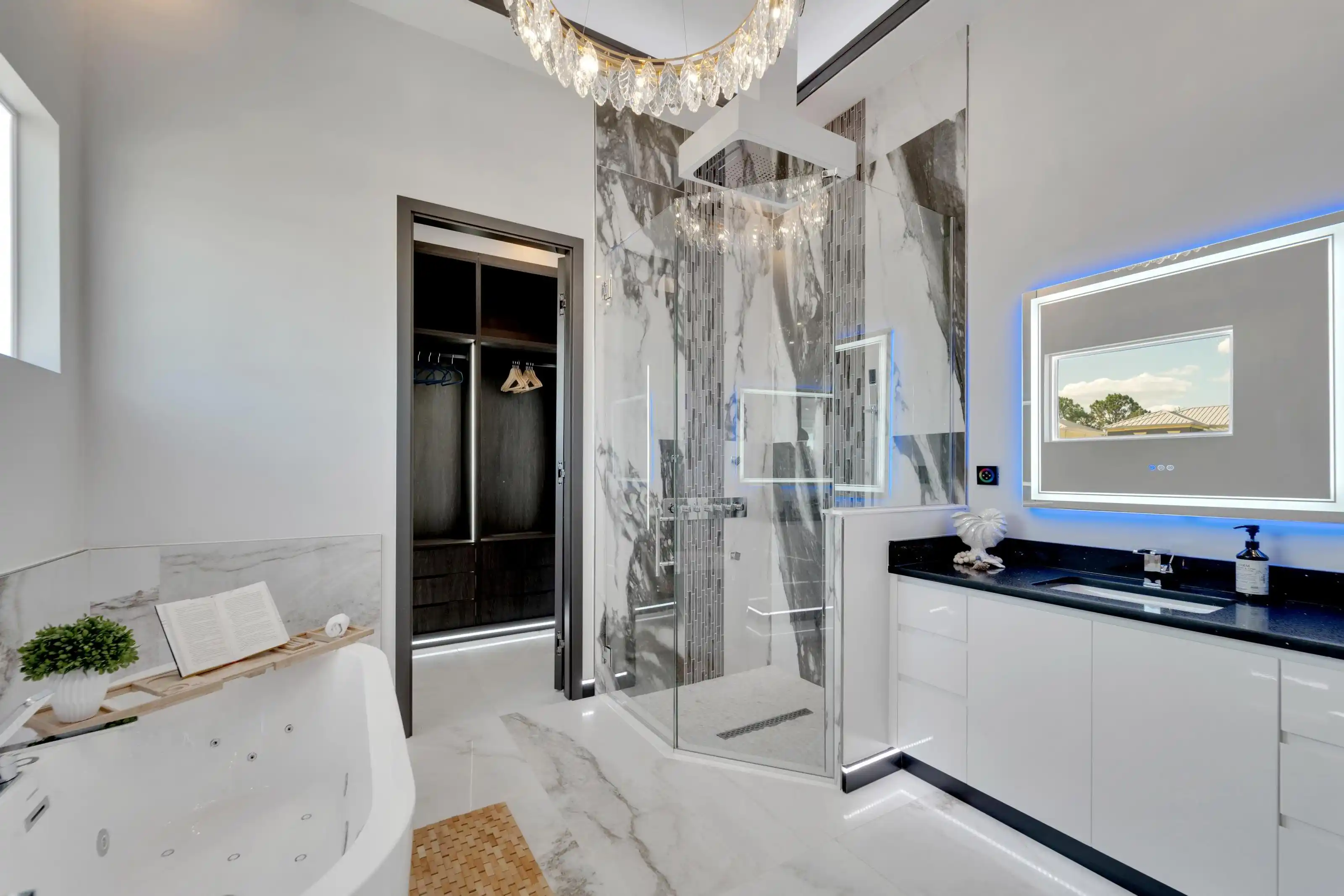 6540 Simone Shores Circle | The Marlin Floorplan 3 Beds | 3 Baths | Saltwater Pool, Spa & Dock with 10K Lift | 2-Car Garage | Direct Bay Access | 12 ft Elevation Waterfront living with direct access to Tampa Bay—this brand-new Apollo Beach pool home features a private dock with 10,000 lb lift, a heated saltwater pool and spa, and no build time required. Located in the small custom-home community of Hemingway Estates, this single-story, solar-powered home offers smart technology, high-end finishes, and strong, energy-efficient construction. Inside, the home welcomes you with smooth-finish walls, soaring ceilings, and a wide-open layout. The Great Room includes a mounted TV and electric fireplace, and the triple sliding glass doors lead straight out to the pool and canal. The kitchen includes quartz countertops, an island with waterfall edges, a built-in oven, gas cooktop with pot filler, wine fridge, and custom cabinetry with European pull-down and organizational shelving. The dining area brings in natural light and waterfront views. A private home office with barn doors and a full bath gives you the option for a guest suite, work-from-home space, or flex room. The home follows a true split-bedroom layout. Both secondary bedrooms include tray ceilings and custom closets. The primary suite is located at the rear of the home with views of the pool and water. The en suite bath includes dual vanities, a jetted soaking tub, and a floor-to-ceiling tiled walk-in shower with multiple showerheads and customizable pressure and lighting settings. This home was built for strength and energy savings, featuring full block construction, a stem wall foundation, solar tile roof with battery backup, hurricane-rated windows and doors, fire-resistant interior doors, Icynene spray foam insulation, and a hardwired security system with fingerprint and faceprint entry. Smart home features allow you to control the pool, lighting, thermostat, security, and garage right from your phone or mounted iPads. Custom lighting accents, built-in surround sound inside and out, automatic heated bidet toilets, and seamless hardware finish out the upgrades. Outdoors, the saltwater pool and spa are ready for year-round enjoyment. The private dock and lift sit behind a brand-new seawall. The two-car garage features multi-layer epoxy flooring and insulated hurricane-rated garage doors. Exterior soffit lighting is customizable—no need to hang holiday lights. Lawn care, landscaping, irrigation maintenance, and annual stormwater drain cleaning are included in the small monthly HOA. Located near schools, shopping, and major highways, 6540 Simone Shores offers modern living in a waterfront community.