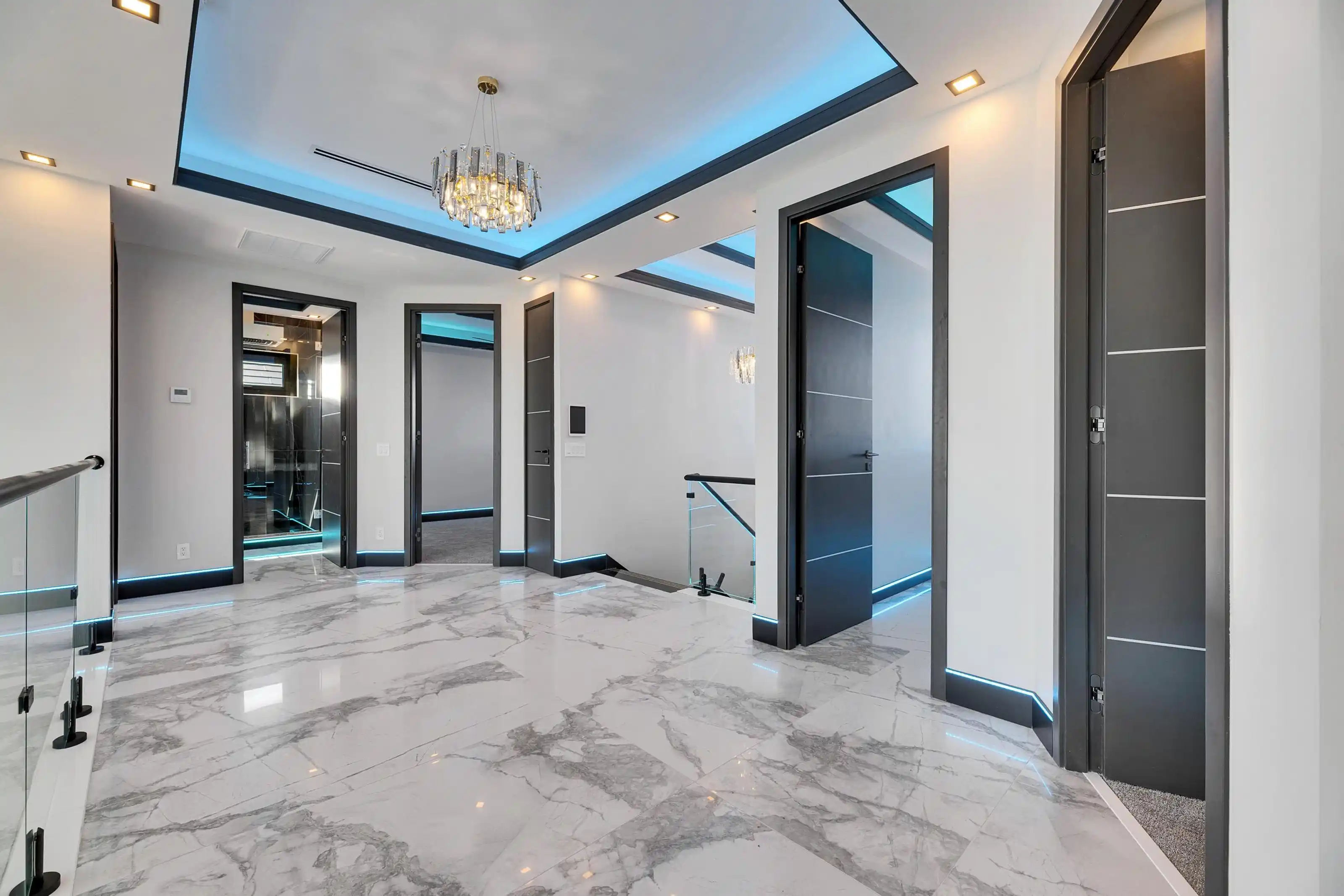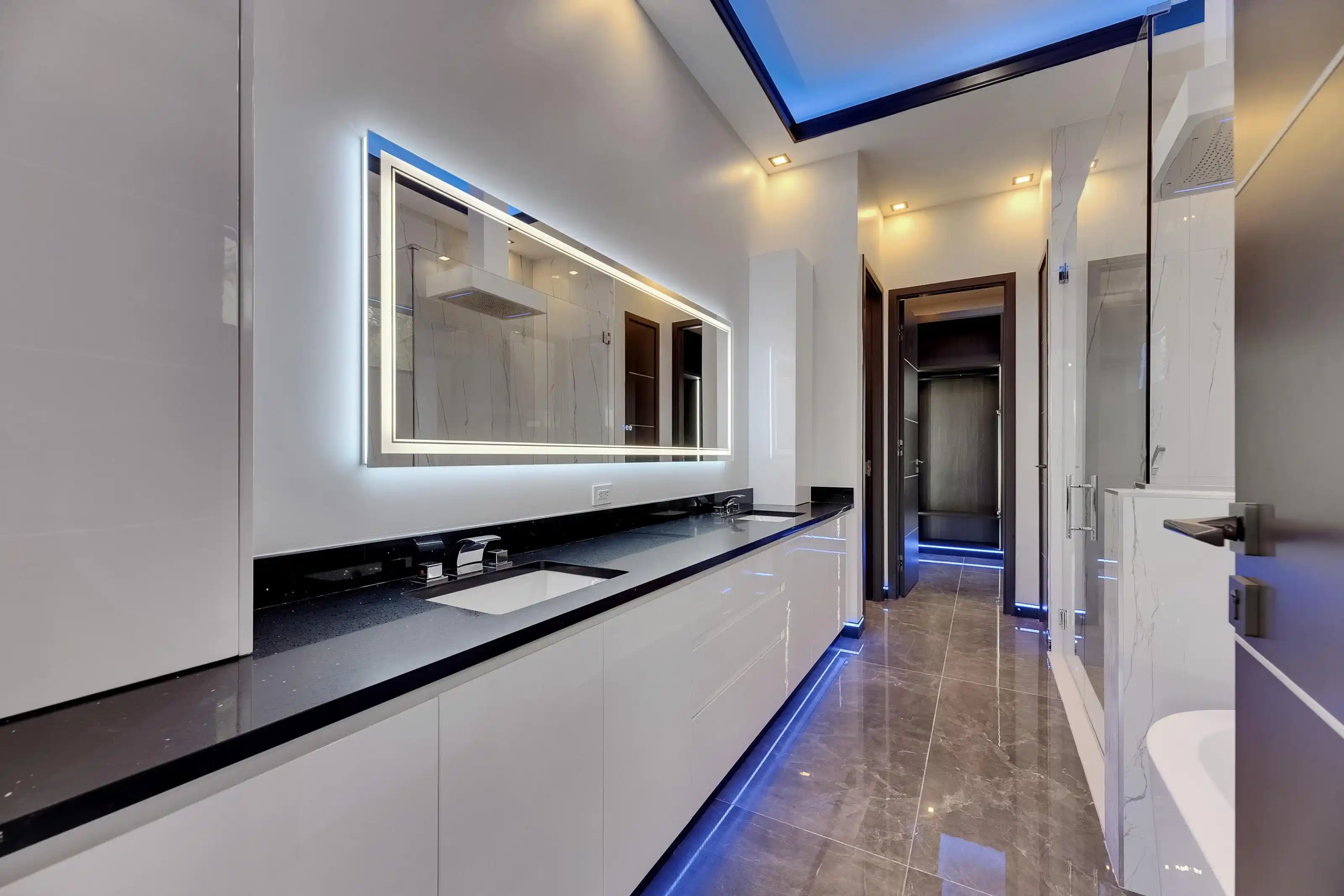 6528 Simone Shores Circle | The Halcyon Floorplan 5 Beds | 4 Baths | 2,654 Living Sq. Ft. | 12 ft Elevation Welcome to 6528 Simone Shores Circle, a newly built 2025 waterfront home by Bistro Builders, located in the elevated community of Simone Shores in Apollo Beach. The Halcyon floorplan offers 5 bedrooms, 4 bathrooms, and 2,654 square feet of living space, plus a private dock, new seawall, 10,000 lb boat lift, and heated saltwater pool with spa. Built for long-term durability and efficiency, this home features solid block construction on both floors, solar shingles, 12-foot elevation, stem wall foundation, cement floors between levels, and hurricane-rated impact windows. Additional upgrades include seamless fire-rated doors, spray foam insulation, insulated garage doors, and multi-layer epoxy garage flooring. Inside, you'll find 24-foot ceilings, smooth finish walls, triple tray ceilings with integrated lighting, and imported marble throughout the main living areas. The open great room includes an electric fireplace, surround sound, and triple sliders leading to the covered lanai with an outdoor kitchen and pool area. A fully integrated smart system manages the solar tiles, lighting, pool, security, and climate control via smartphone or mounted iPads. Security includes facial and fingerprint recognition, and programmable lighting is installed in the soffits, windows, and baseboards. The chef’s kitchen features quartz countertops, a waterfall island, gas stove with pot filler, wine cooler, walk-in pantry, and European-style cabinetry with custom pull-down shelves. The main-level primary suite has canal and pool views, private lanai access, a large walk-in closet with built-in organizers, and a bath with dual vanities, jetted tub, and a floor-to-ceiling tiled shower with customizable lighting and pressure. Upstairs, secondary bedrooms each have custom closets and access to an open-air balcony with water views. A full laundry room with sink and folding station and two additional bathrooms complete the upper level. A paver driveway and included lawncare through the low HOA make maintenance easy. Just minutes from shopping, dining, the Manatee Viewing Center, and major highways, this home combines quality construction, efficiency, and waterfront living in one of Apollo Beach’s most exciting new communities.