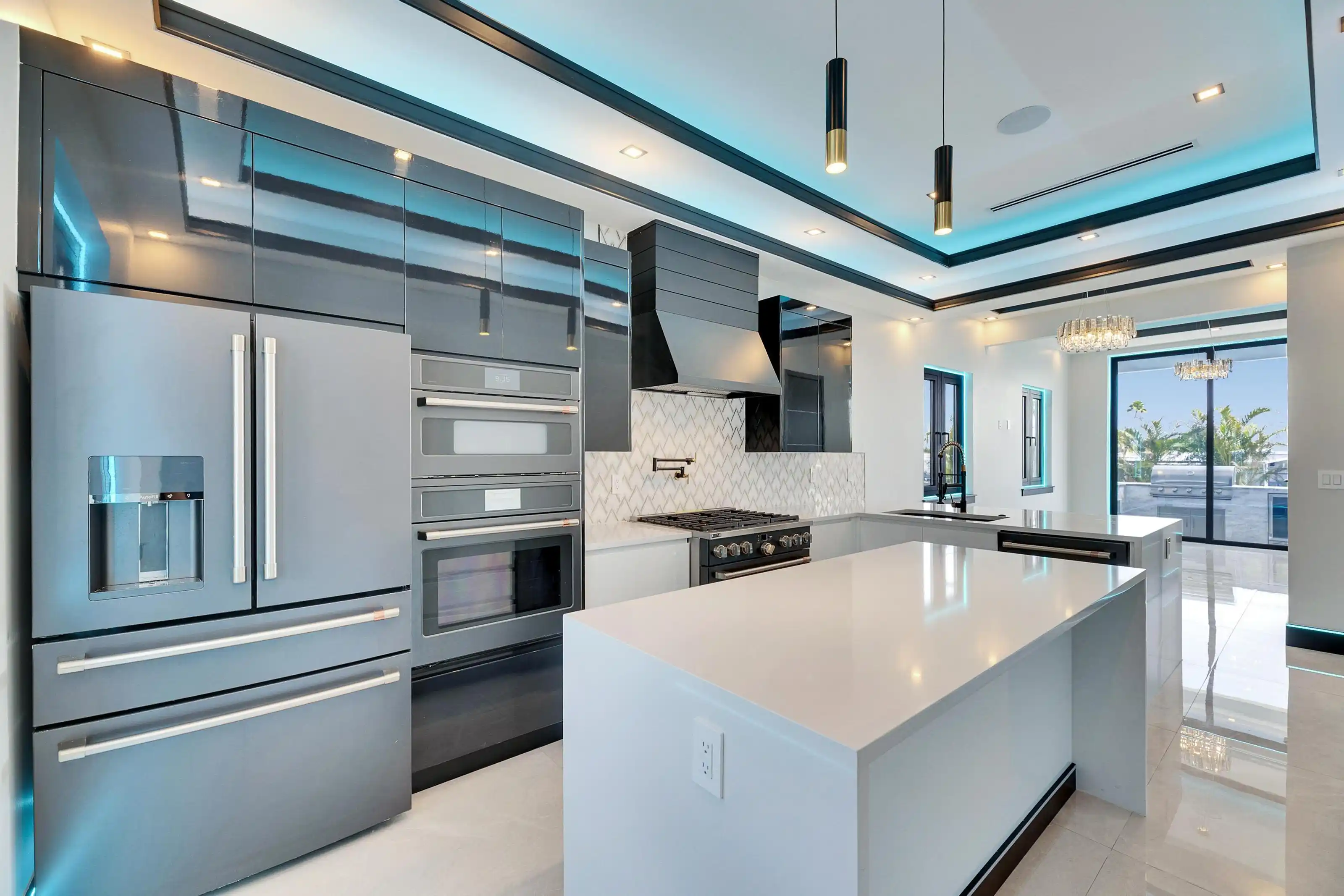 6538 Simone Shores Circle | The Orion Floorplan 5 Beds | 4 Baths | 2,654 Living Sq. Ft. | 12 ft Elevation Welcome to 6538 Simone Shores Circle, a newly constructed 2024 waterfront home by Bistro Builders, located in the elevated community of Simone Shores in Apollo Beach. The Orion floorplan features 5 bedrooms and 4 bathrooms across 2,654 sq. ft. of living space, along with a private dock, new seawall, 10,000 lb boat lift, and a heated saltwater pool and spa. Built for long-term strength and energy efficiency, this home includes solid block construction on both floors, a 12-foot elevation, stem wall foundation, and cement flooring between levels. It also features hurricane-rated impact windows, solar roof shingles, seamless fire-resistant doors, icynene spray foam insulation, and insulated hurricane-rated garage doors. The garage includes multi-layer epoxy flooring. Inside, the home offers soaring 24-ft ceilings, smooth finish walls, and triple tray ceilings with integrated lighting. Custom imported tile runs throughout the main living spaces. The open great room features an electric fireplace, surround sound, and triple sliding glass doors that open to the covered lanai with outdoor kitchen and open pool with hot tub area. A fully integrated smart system controls the solar roof tiles, lighting, thermostat, garage, pool, and security features from your phone or mounted iPads. Security includes both facial and fingerprint recognition access. Programmable soffit, window, and baseboard lighting is installed throughout. The chef’s kitchen includes quartz countertops, a waterfall island, a gas stove with pot filler, a wine cooler, walk-in pantry, and European-style cabinetry with pull-down and organizational shelving. The main-level primary suite offers canal and pool views, lanai access, and a large walk-in closet with a European organization system. The ensuite bath includes dual vanities, a jetted soaking tub, and a floor-to-ceiling tiled shower with multiple shower heads offering adjustable color and pressure settings. Secondary bedrooms upstairs are generously sized, each with custom closets and access to the balcony with water views and open-air. A second floor laundry room with folding station and sink adds convenience, along with two full bathrooms upstairs. The dining room is full of natural light, and the split bedroom layout provides added privacy. This home includes a paver driveway. Lawncare and landscaping service covered by the low monthly HOA, and is located just minutes from the Manatee Viewing Center, highways, restaurants, shopping, and schools. With unmatched construction quality, energy-efficient upgrades, and a prime waterfront location, 6538 Simone Shores Circle offers the ideal blend of Florida lifestyle and long-term peace of mind.