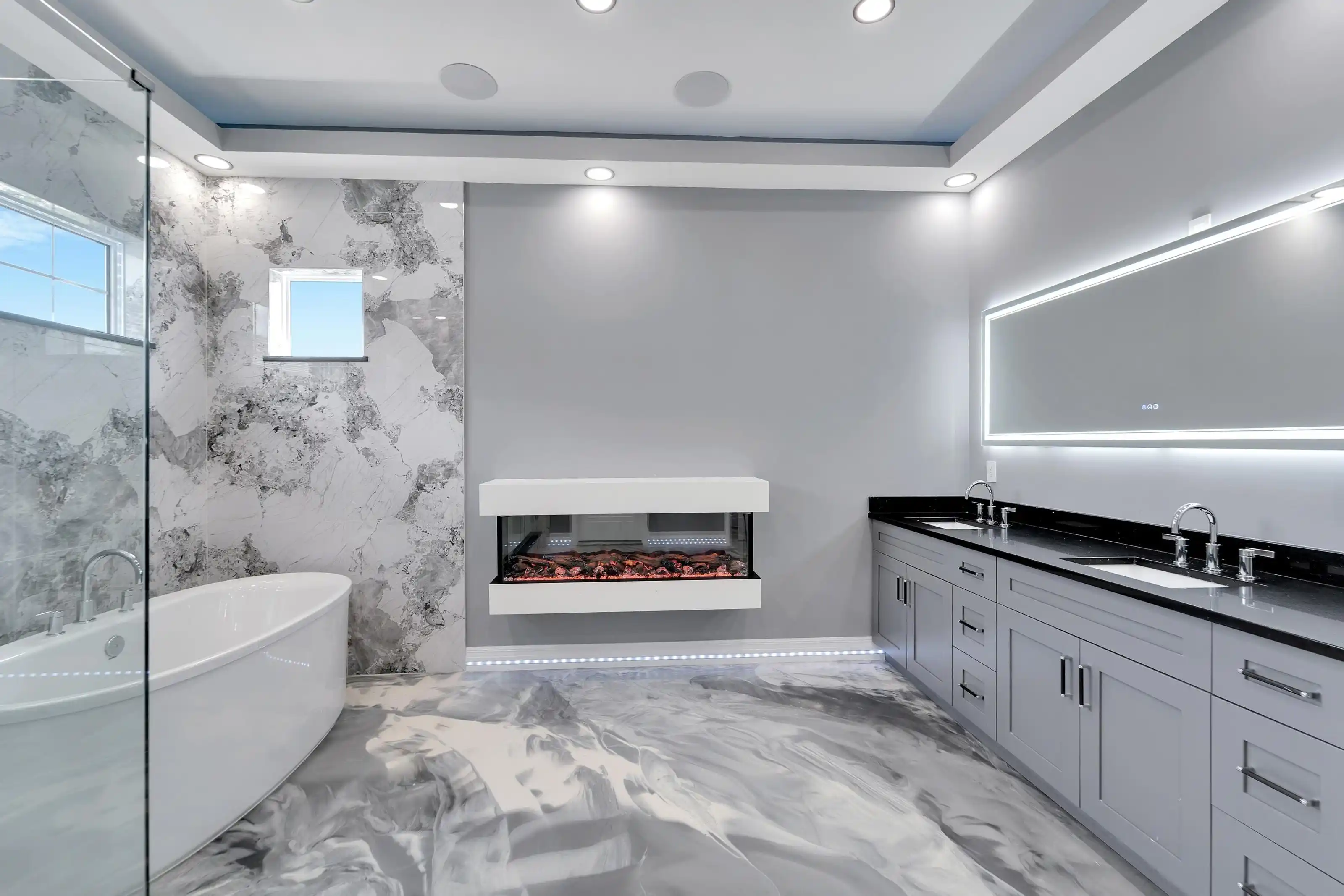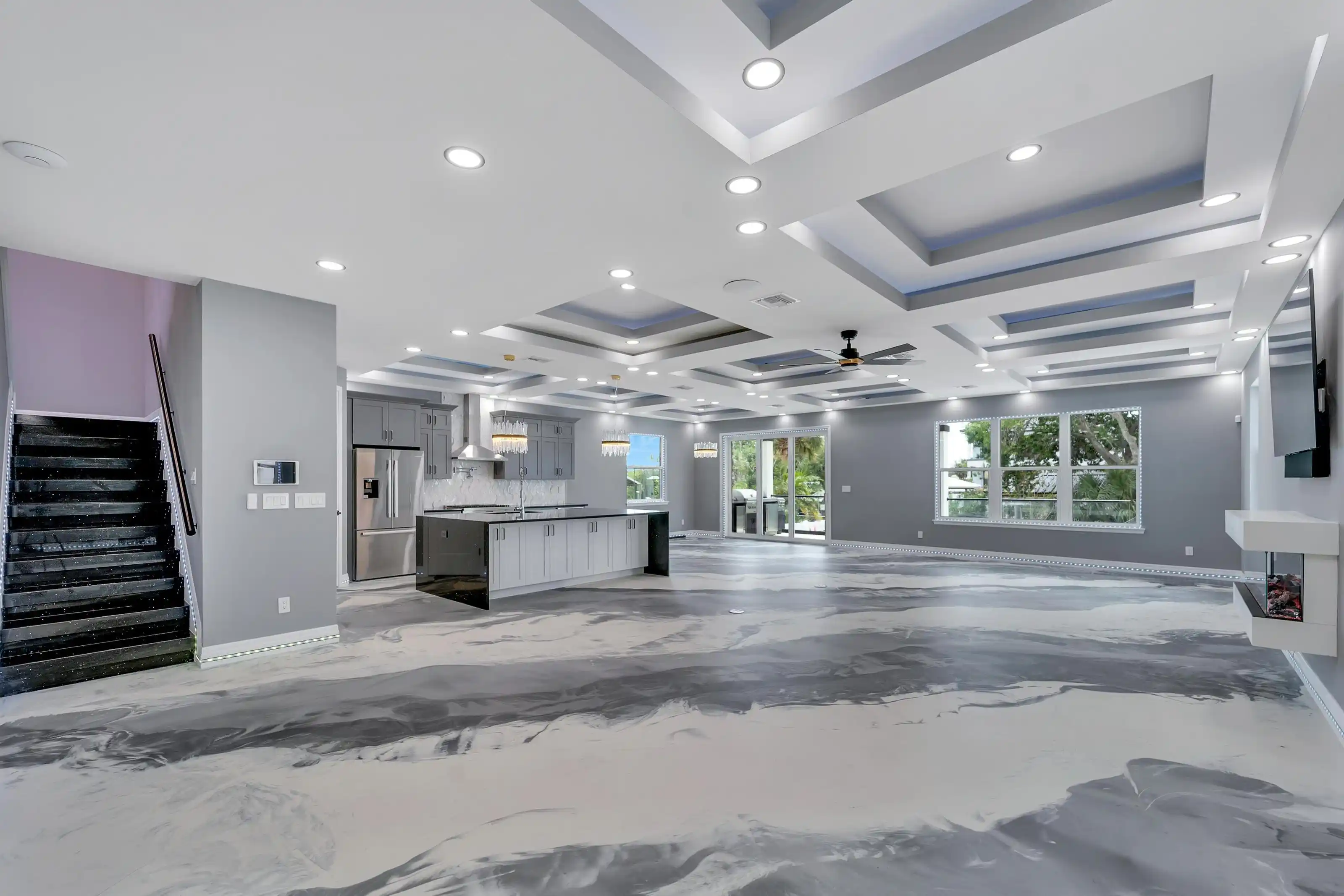6532 Simone Shores Circle | The Marlin Floorplan 3 Beds | 3 Baths | Saltwater Pool, Spa & Dock with 10K Lift | 2-Car Garage | Direct Bay Access | 12 ft Elevation Waterfront living with direct access to Tampa Bay—this brand-new Apollo Beach pool home features a private dock with 10,000 lb lift, a heated saltwater pool and spa, and no build time required. Located in the small custom-home community of Hemingway Estates, this single-story, solar-powered home offers smart technology, high-end finishes, and strong, energy-efficient construction. Inside, the home welcomes you with smooth-finish walls, soaring ceilings, and a wide-open layout. The Great Room includes a mounted TV and electric fireplace, and the triple sliding glass doors lead straight out to the pool and canal. The kitchen includes quartz countertops, an island with waterfall edges, a built-in oven, gas cooktop with pot filler, wine fridge, and custom cabinetry with European pull-down and organizational shelving. The dining area brings in natural light and waterfront views. A private home office with barn doors and a full bath gives you the option for a guest suite, work-from-home space, or flex room. The home follows a true split-bedroom layout. Both secondary bedrooms include tray ceilings and custom closets. The primary suite is located at the rear of the home with views of the pool and water. The en suite bath includes dual vanities, a jetted soaking tub, and a floor-to-ceiling tiled walk-in shower with multiple showerheads and customizable pressure and lighting settings. This home was built for strength and energy savings, featuring full block construction, a stem wall foundation, solar tile roof with battery backup, hurricane-rated windows and doors, fire-resistant interior doors, Icynene spray foam insulation, and a hardwired security system with fingerprint and faceprint entry. Smart home features allow you to control the pool, lighting, thermostat, security, and garage right from your phone or mounted iPads. Custom lighting accents, built-in surround sound inside and out, automatic heated bidet toilets, and seamless hardware finish out the upgrades. Outdoors, the saltwater pool and spa are ready for year-round enjoyment. The private dock and lift sit behind a brand-new seawall. The two-car garage features multi-layer epoxy flooring and insulated hurricane-rated garage doors. Exterior soffit lighting is customizable—no need to hang holiday lights. Lawn care, landscaping, irrigation maintenance, and annual stormwater drain cleaning are included in the small monthly HOA. Located near schools, shopping, and major highways, 6532 Simone Shores offers modern living in a waterfront community.