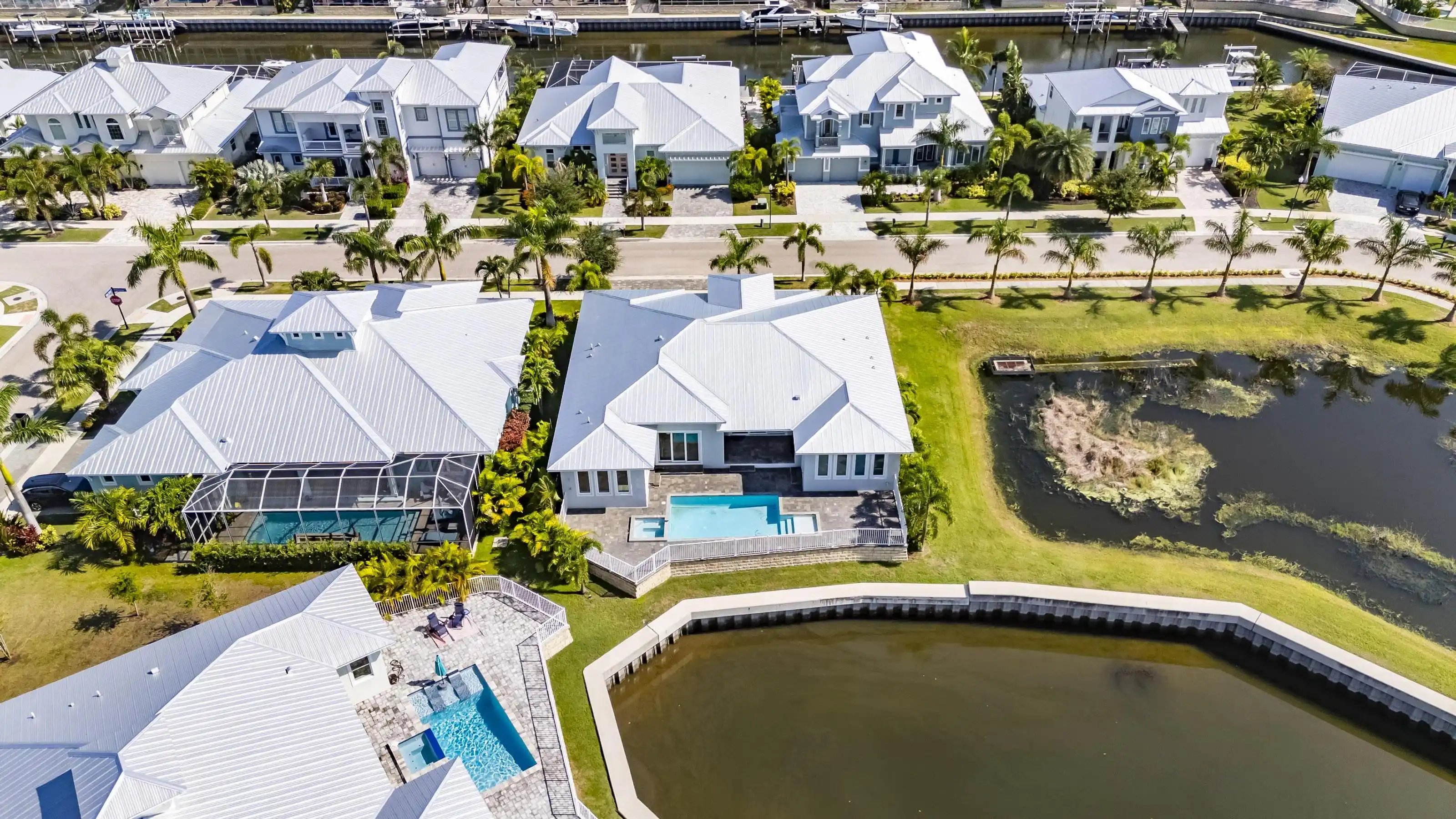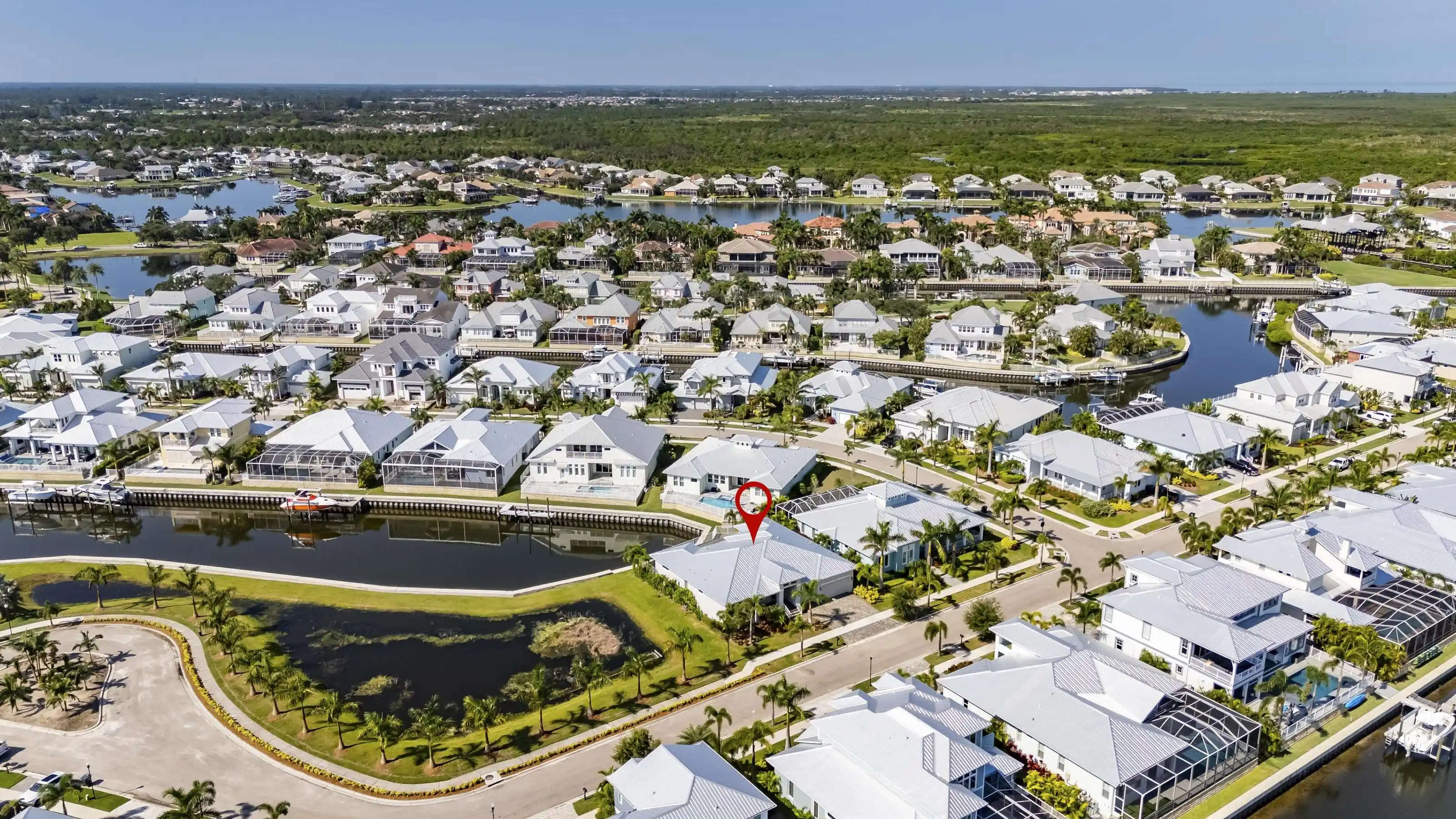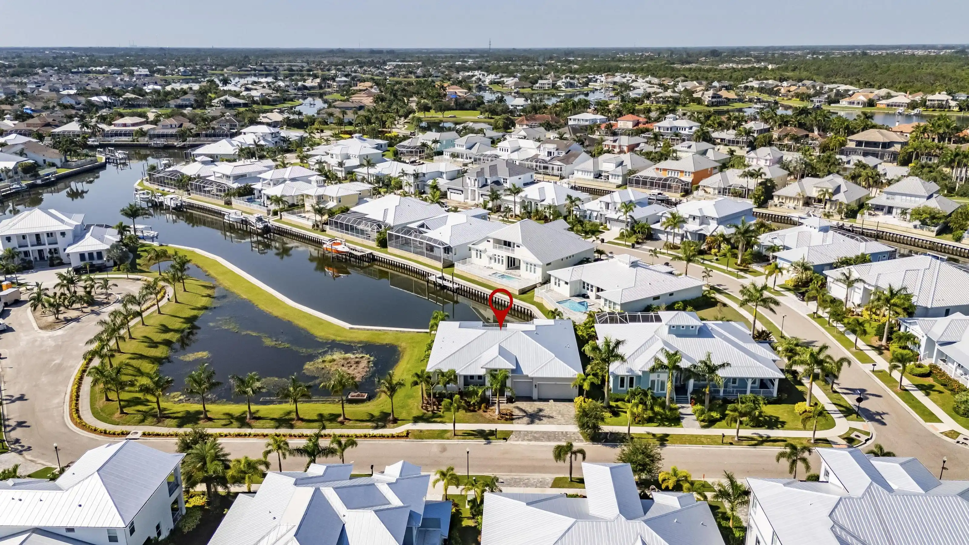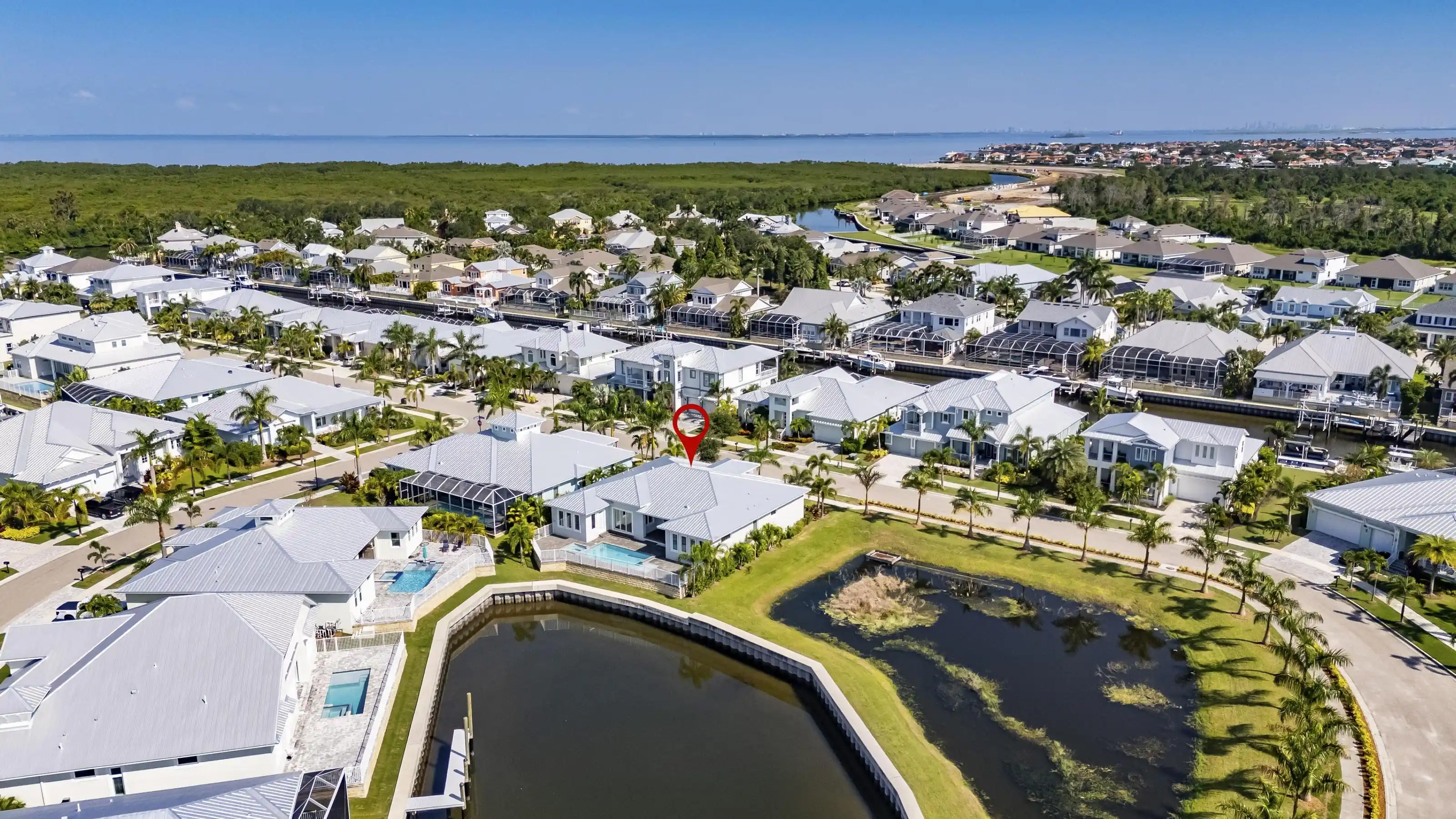5616 Seagrass Place | Gulfview Floorplan 4 Beds | 4 Baths | Den + Loft | 3,618 Sq Ft | Oversized Lot with 140’ Waterfront | Former Model by Sabal 5616 Seagrass Place is a former model home built by Sabal featuring the sought-after Gulfview floorplan on an oversized pie-shaped lot with over 140 feet of direct waterfront—nearly double the frontage of most homes in the community.