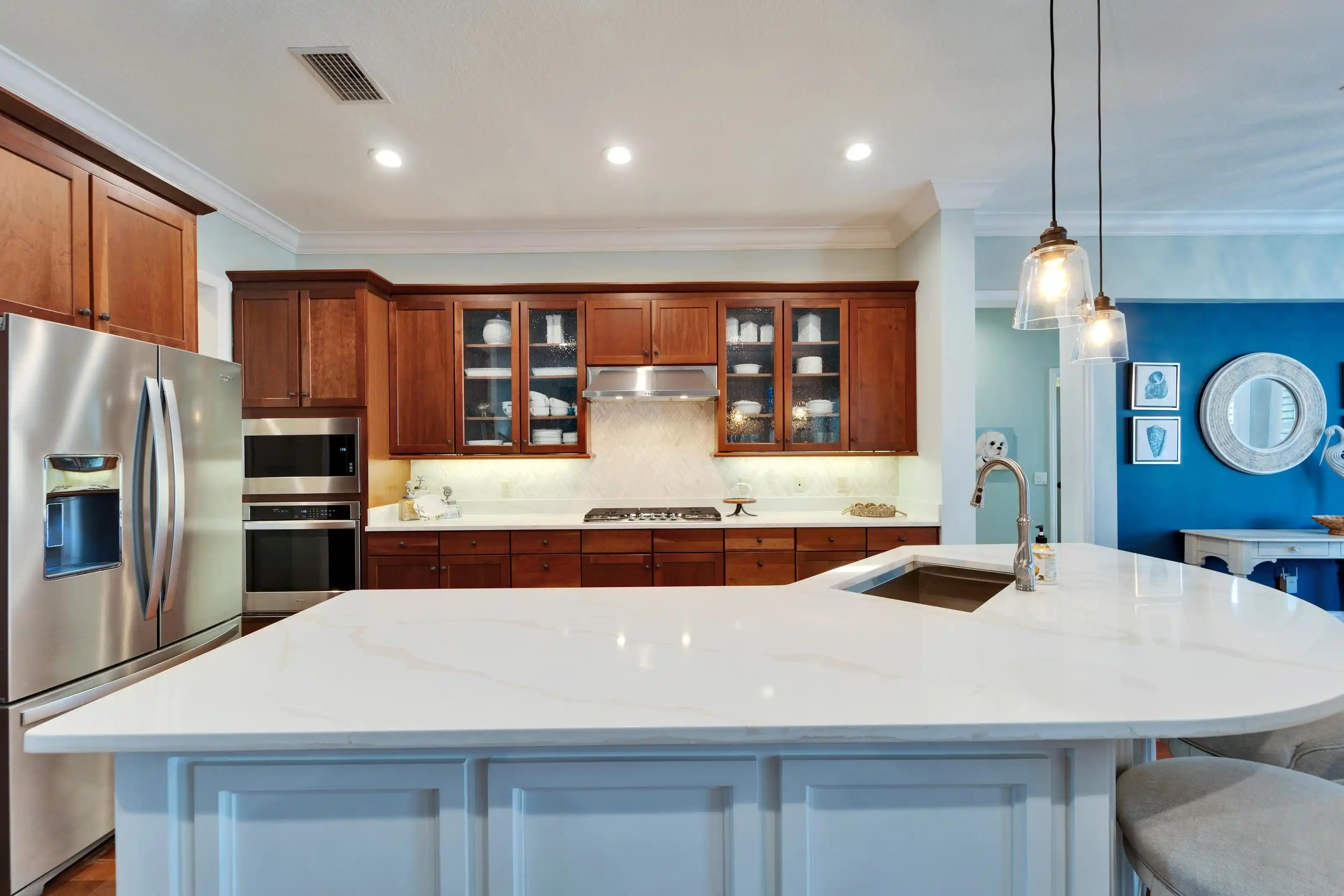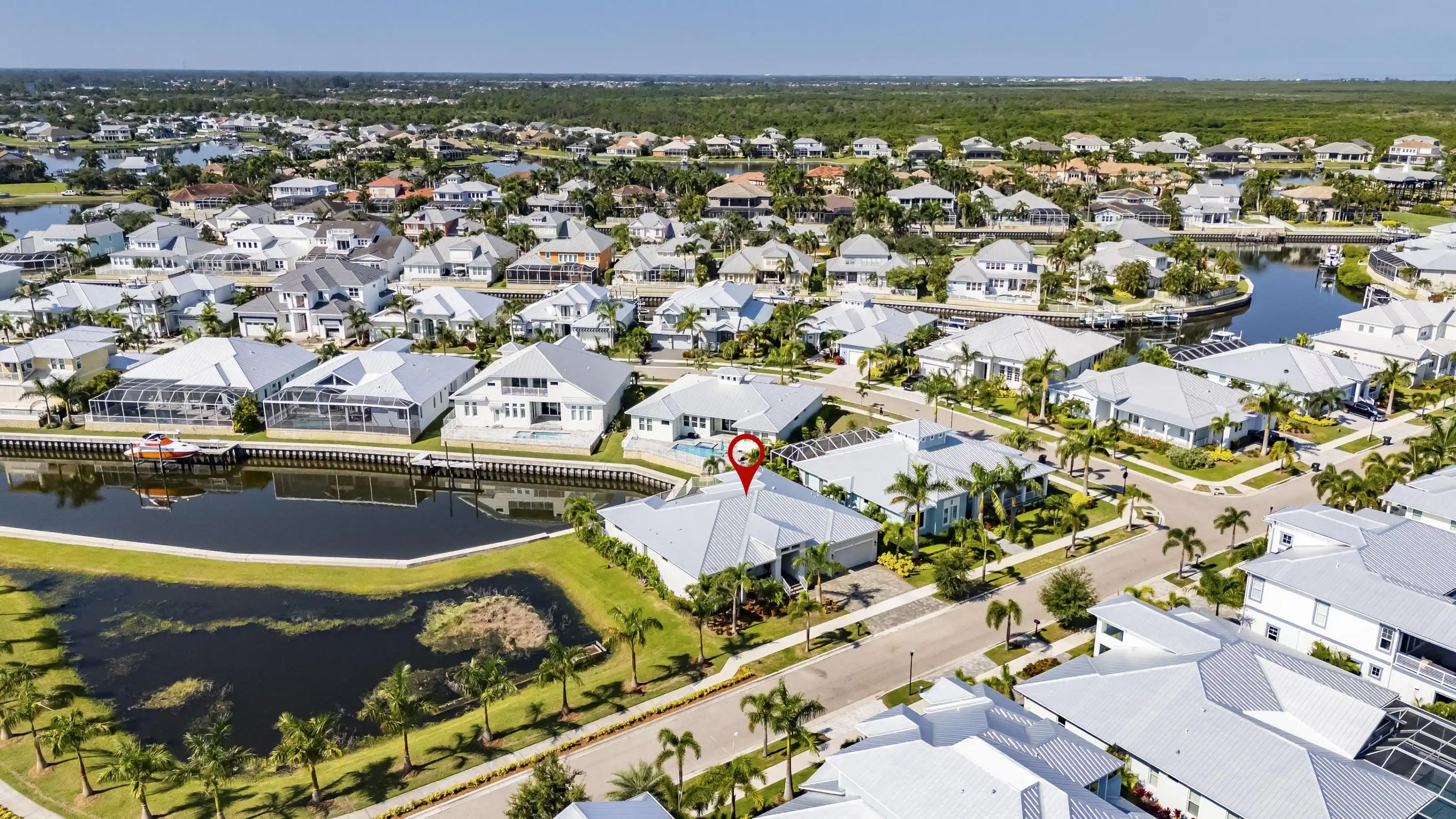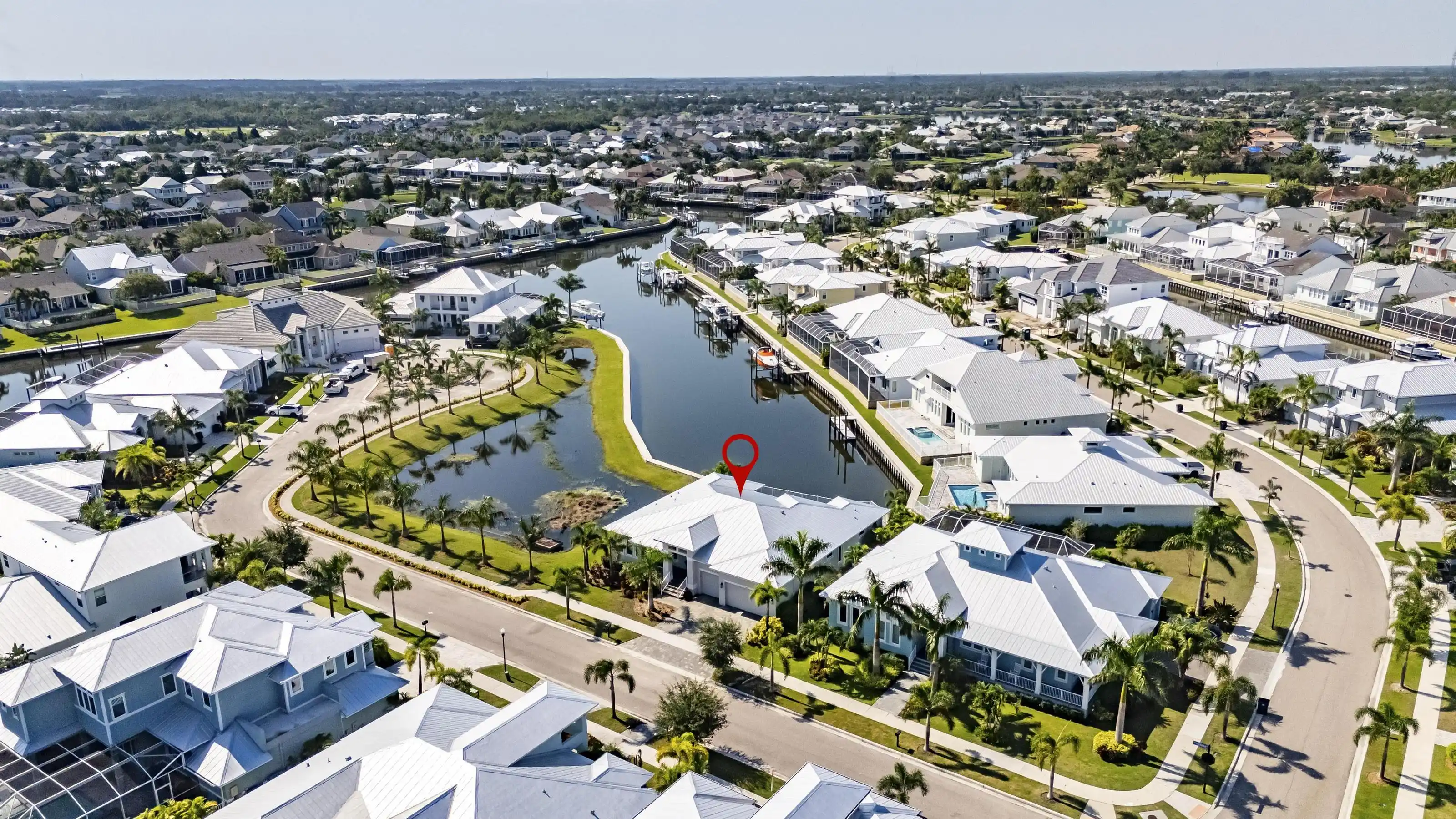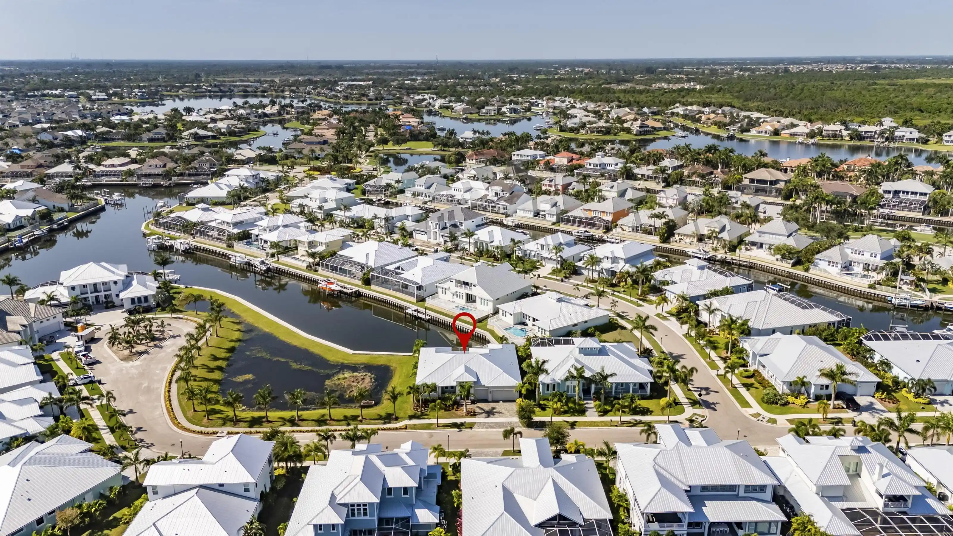 5616 Seagrass Place | Gulfview Floorplan 4 Beds | 4 Baths | Den + Loft | 3,618 Sq Ft | Oversized Lot with 140’ Waterfront | Former Model by Sabal 5616 Seagrass Place is a former model home built by Sabal featuring the sought-after Gulfview floorplan on an oversized pie-shaped lot with over 140 feet of direct waterfront—nearly double the frontage of most homes in the community.